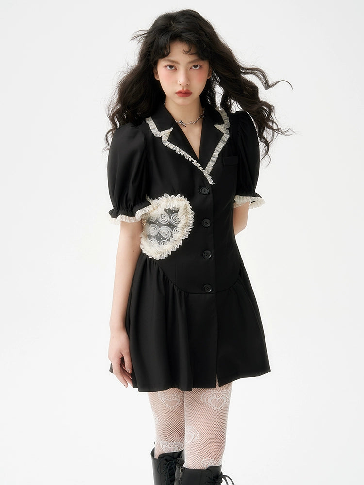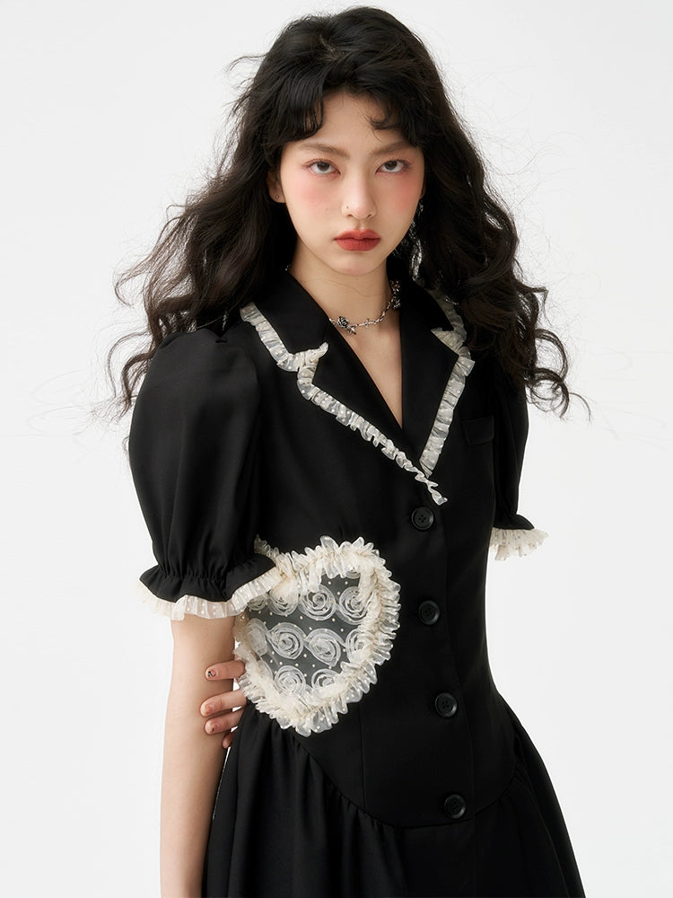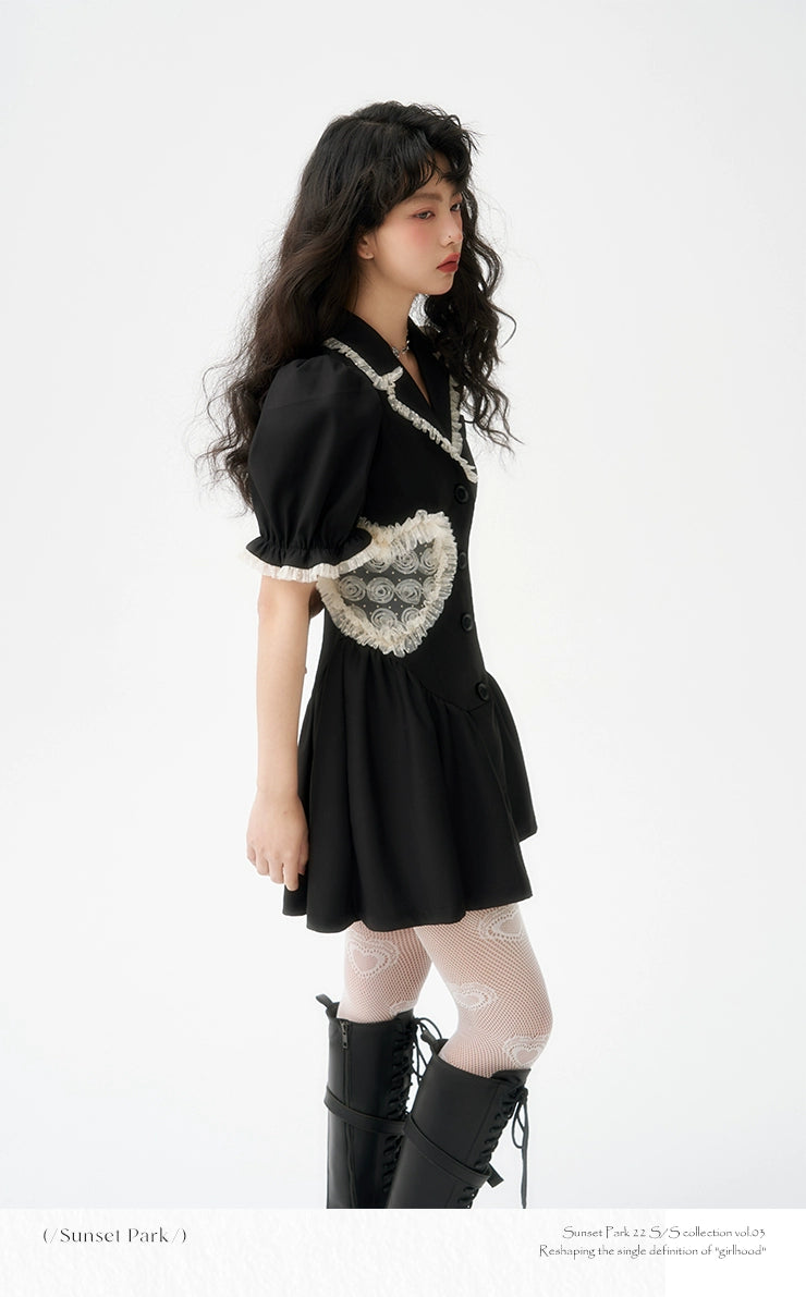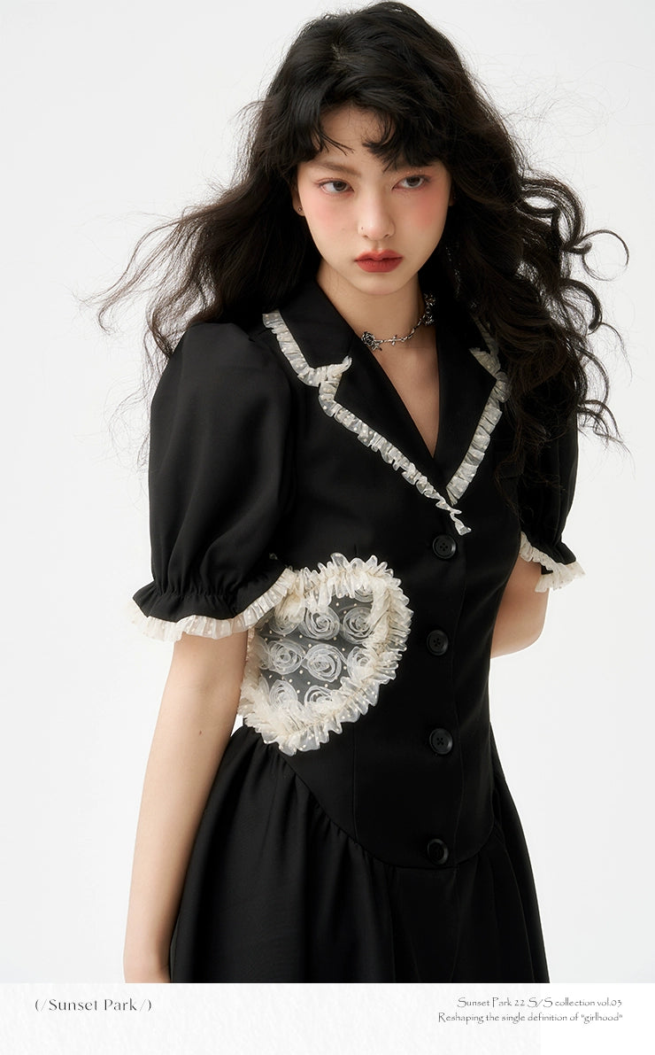 サンセットパークオリジナル中空ハートデザインブラックスーツドレスはスリムな気質を持っています