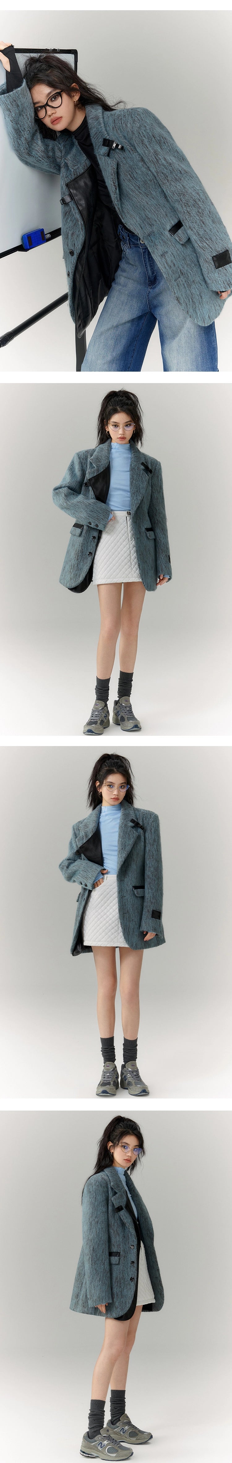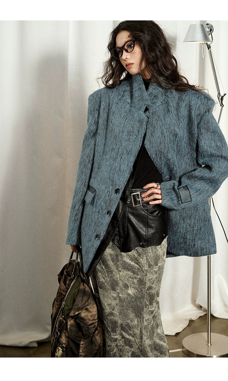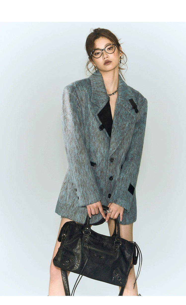 [スポット] OfAkivaツイードブルーとグレー織りウールファッションスーツレディーススーツスカートツーピースセット