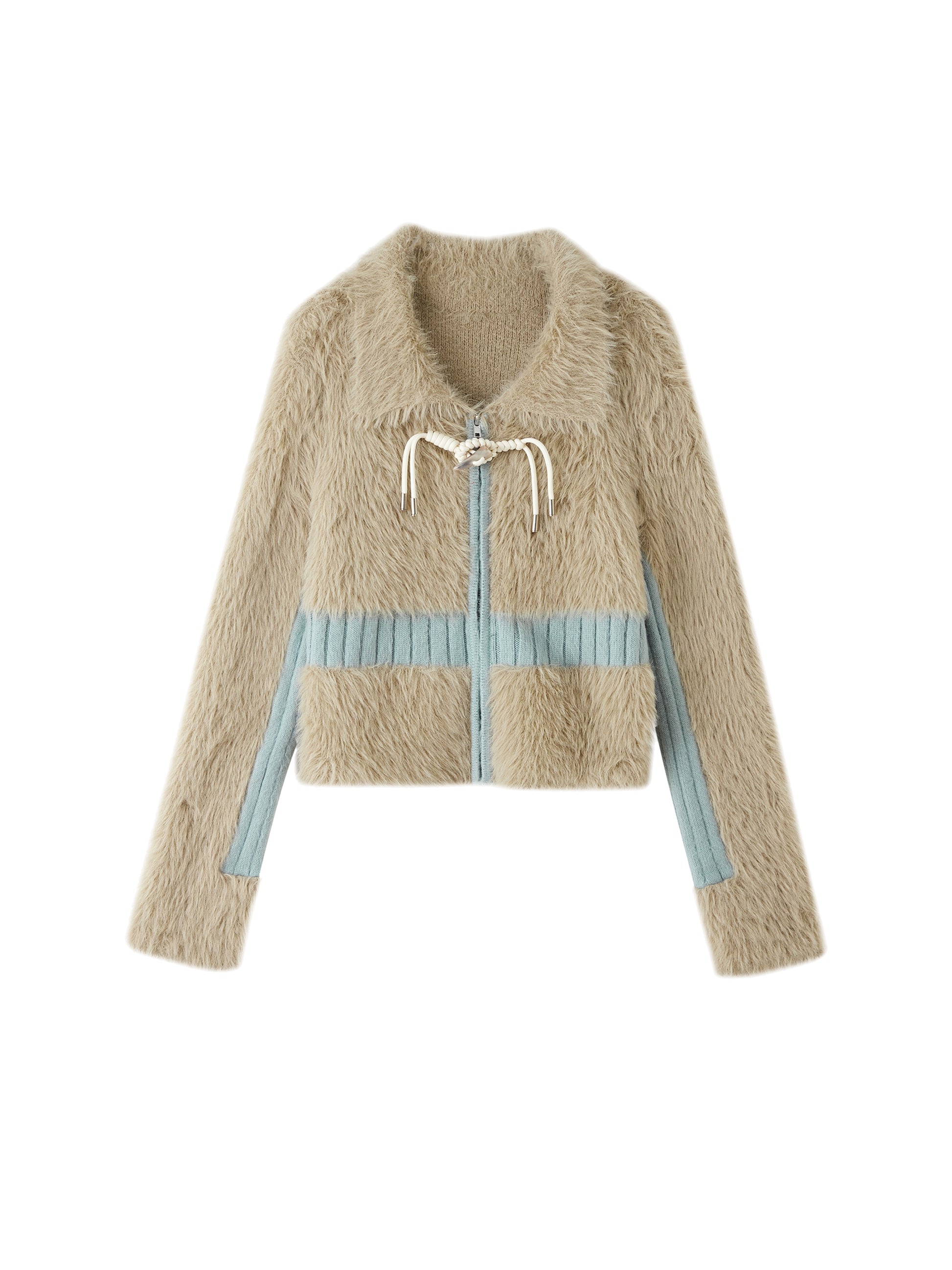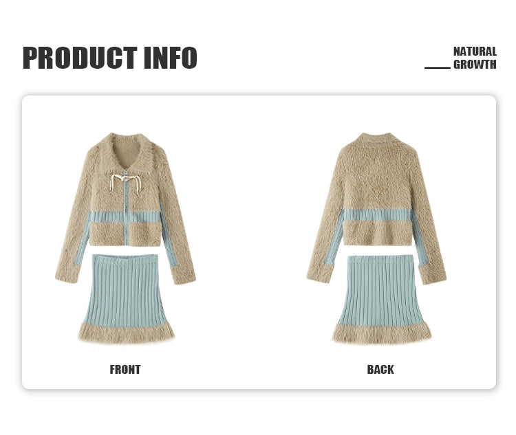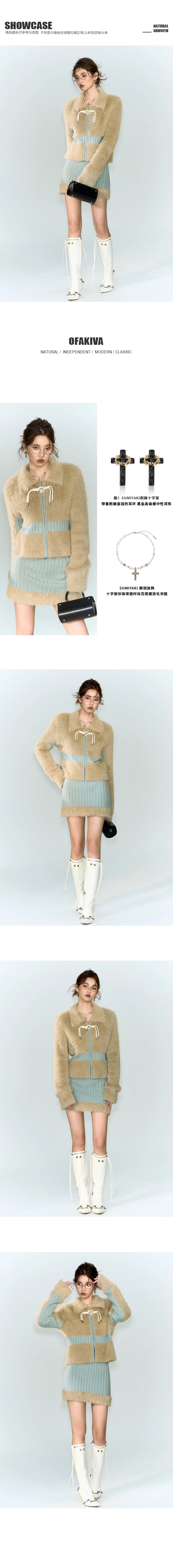 [スポット] OfAkiva「スプライシングその他」フェイクミンクニットパッチワークウィンターコートスカートスーツレディース