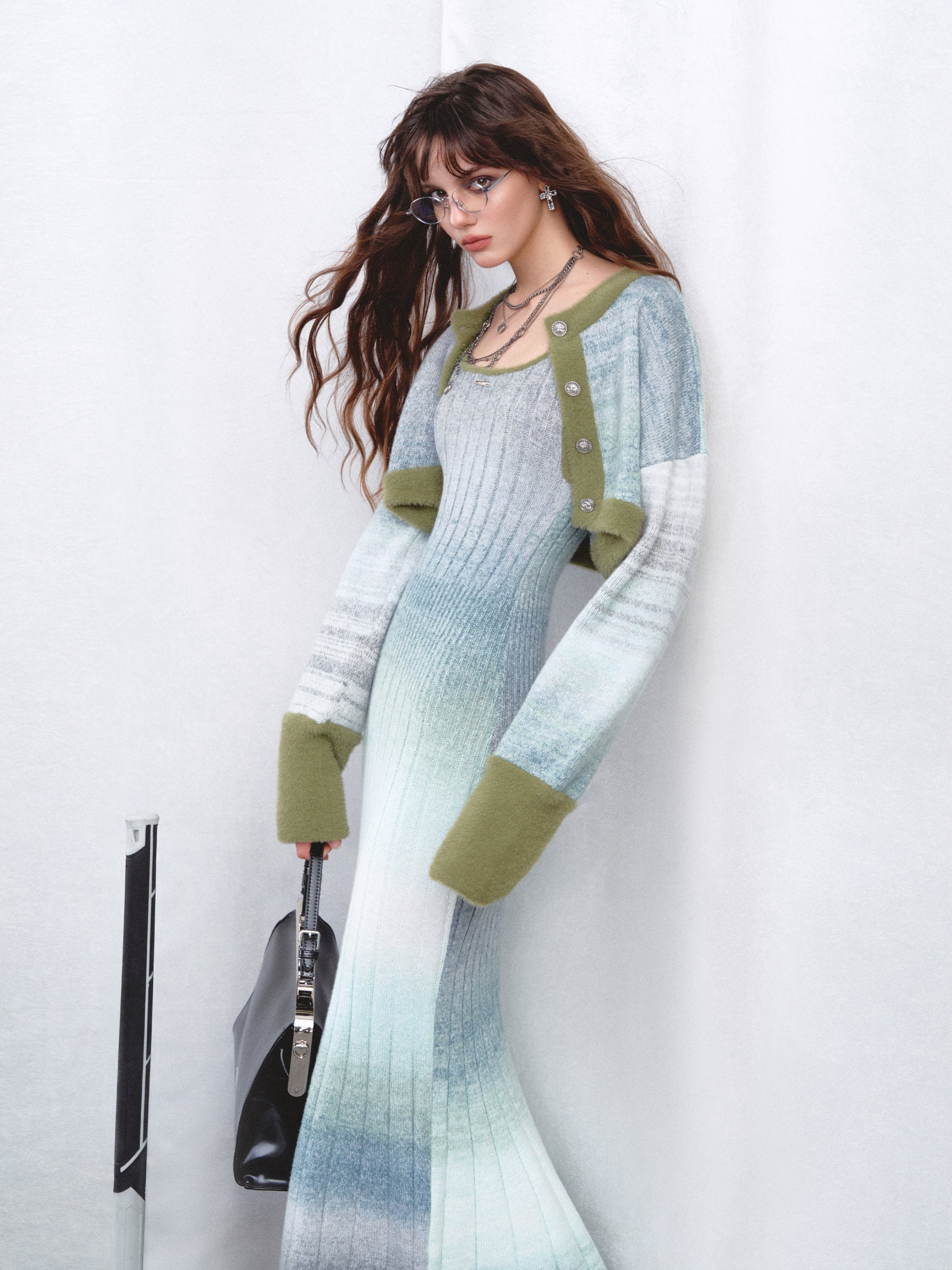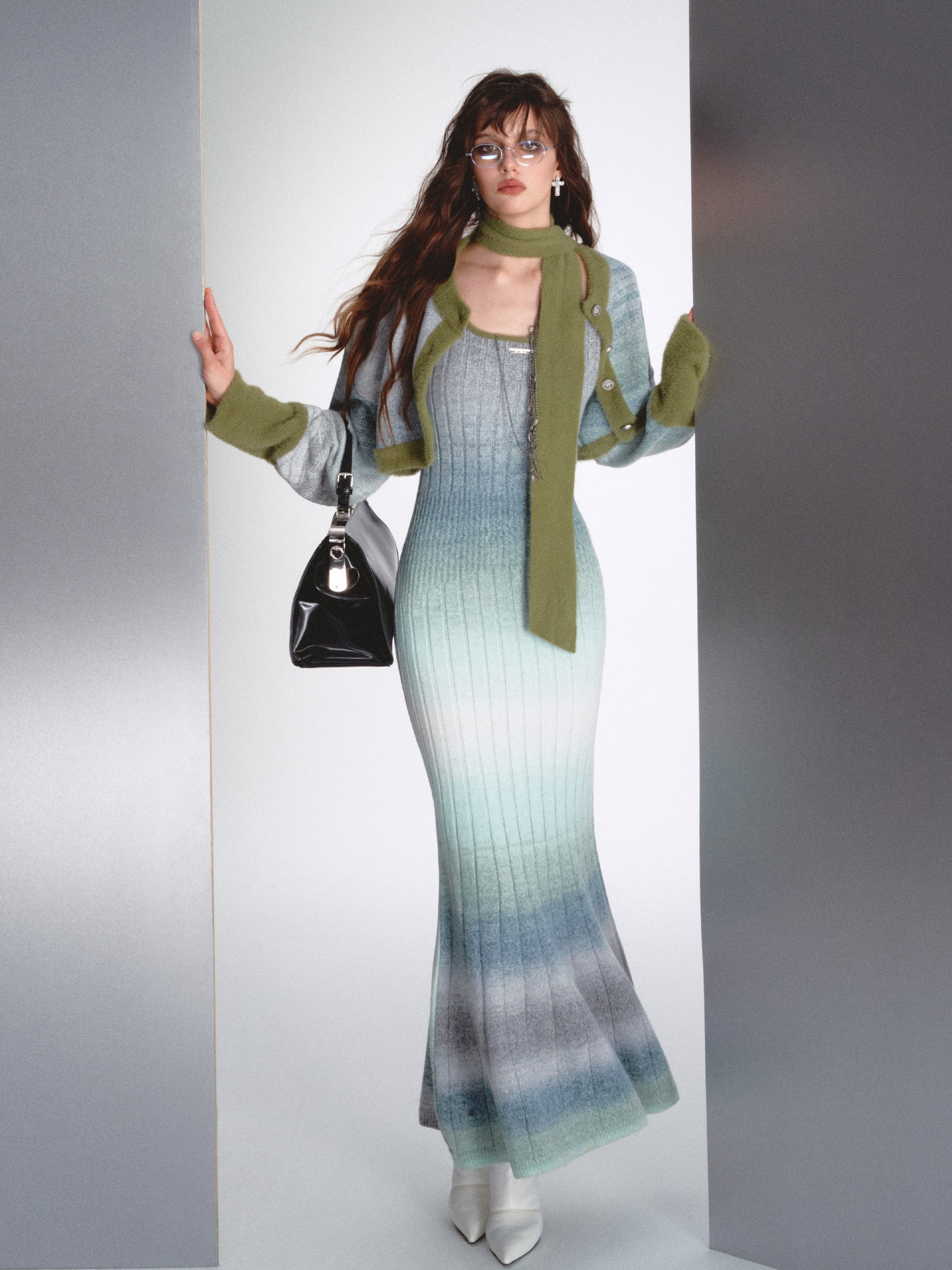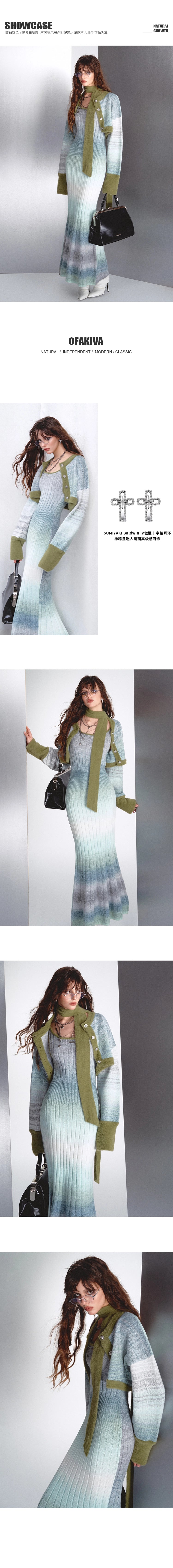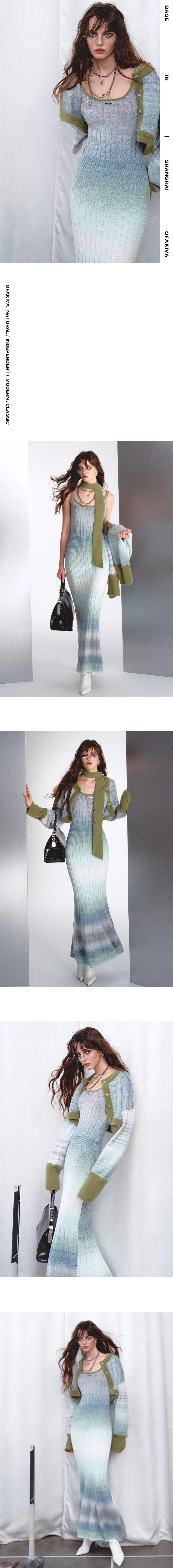 [スポット] OfAkiva「バイカルショア」グラデーションサスペンダーニットワンピースセット女性用ツーピースセット