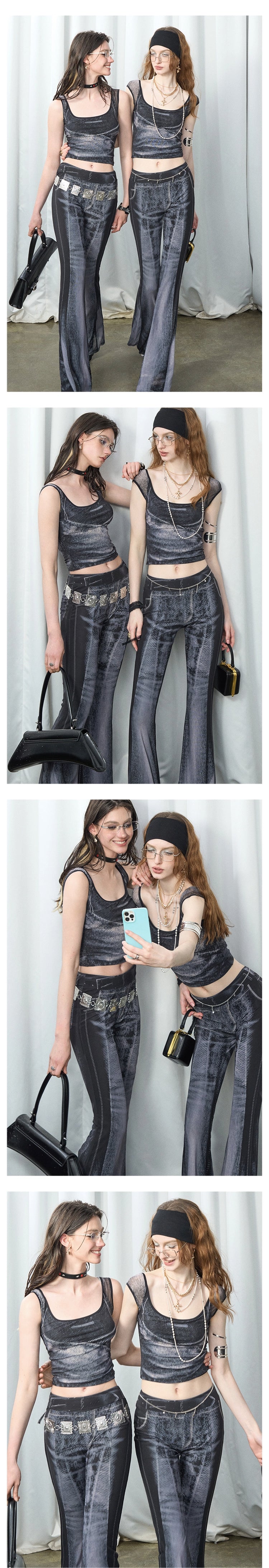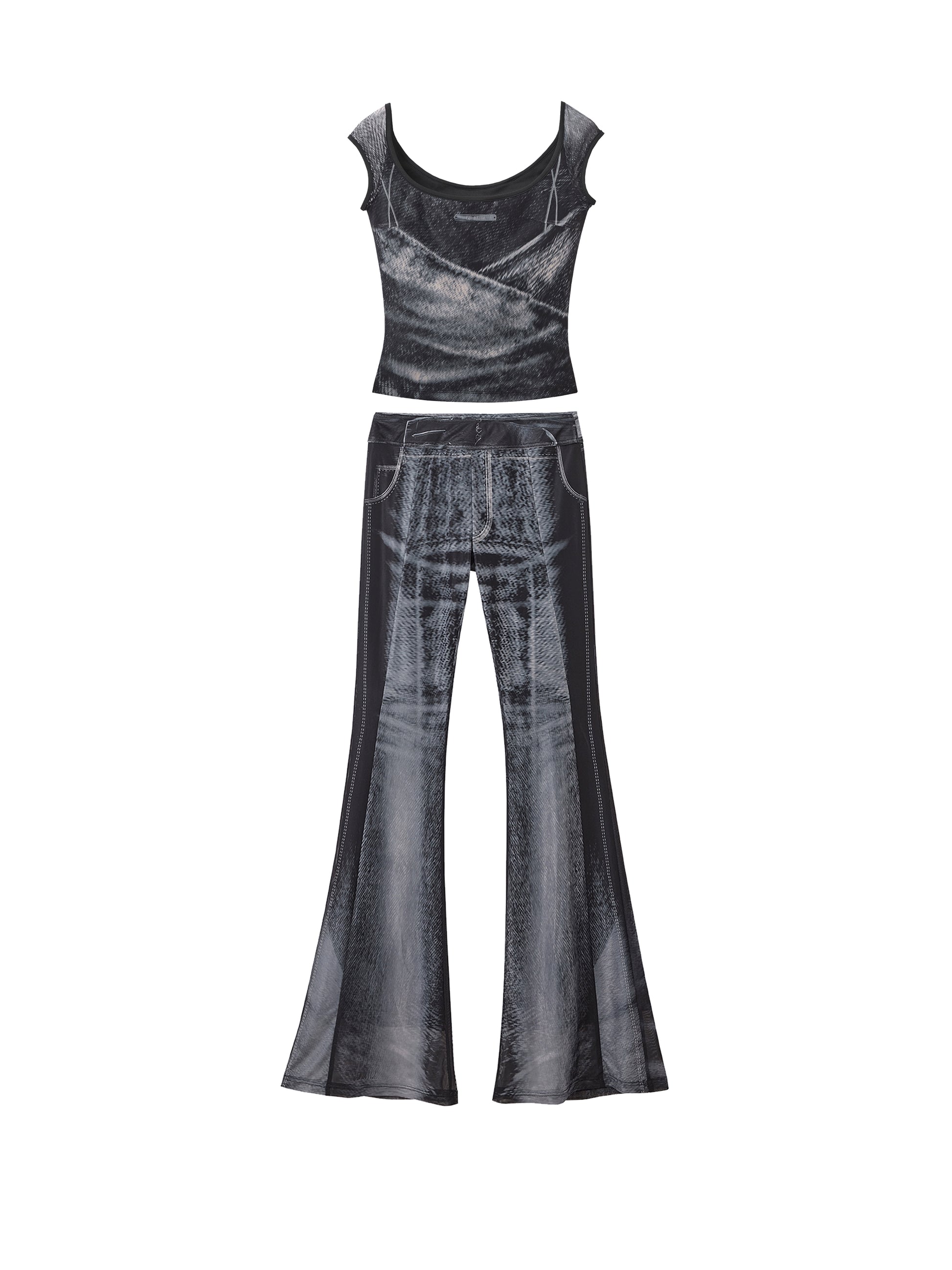 [スポット] OfAkiva「マルチマスタリー」デニムプリントアイスメッシュ通気性ストレッチファッションセット