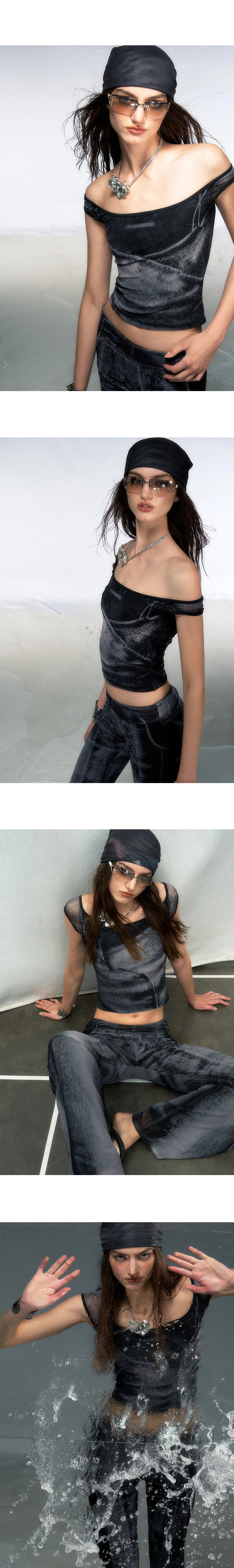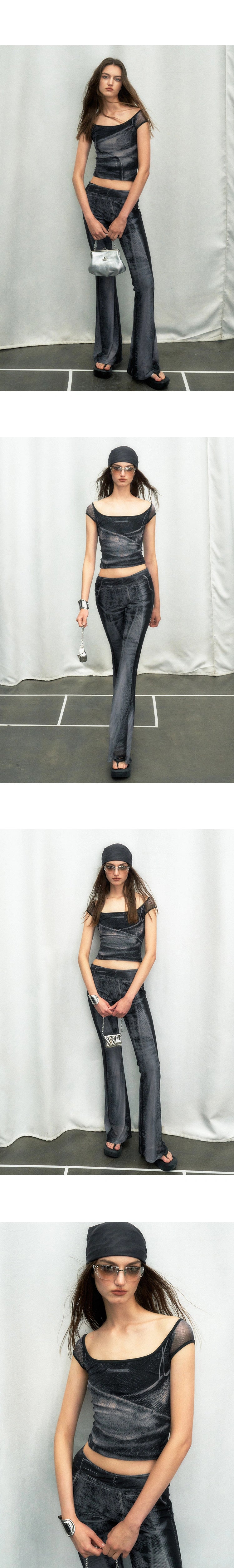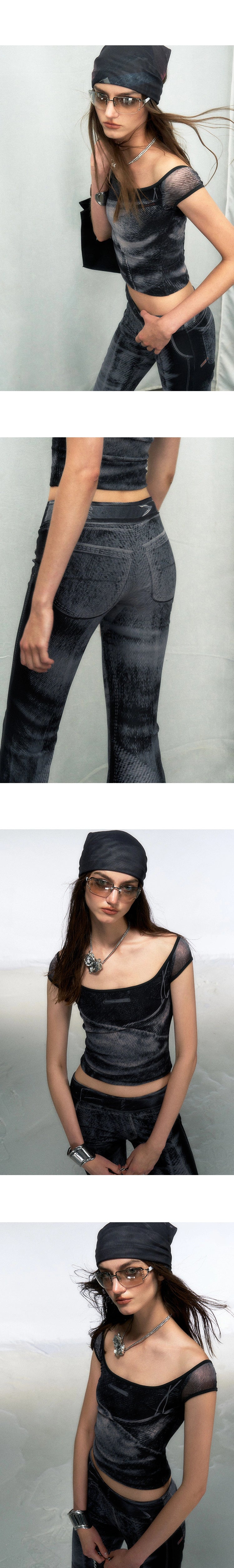 [スポット] OfAkiva「マルチマスタリー」デニムプリントアイスメッシュ通気性ストレッチファッションセット
