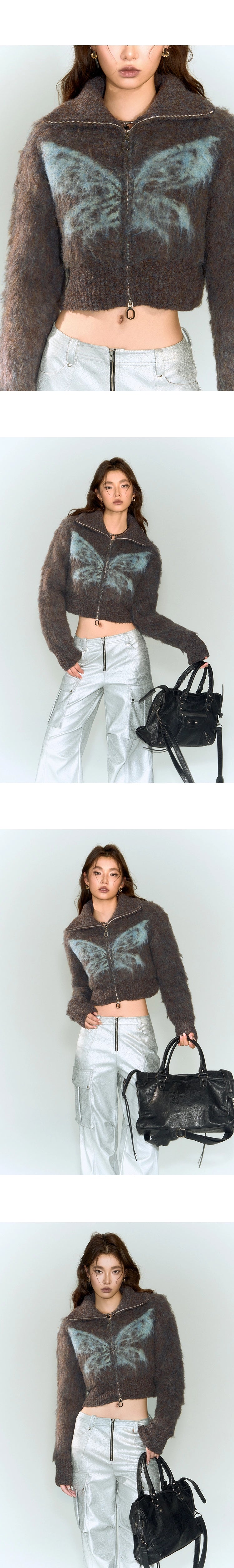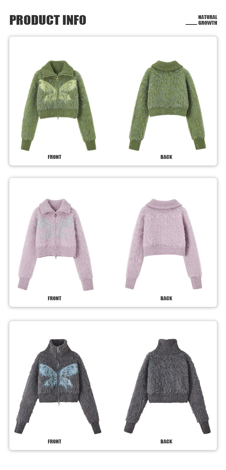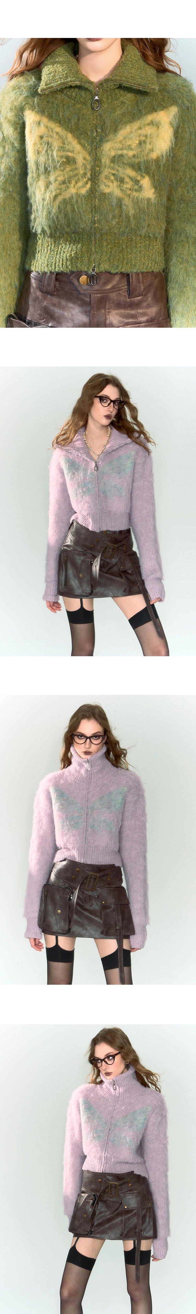 [スポット] OfAkiva「幻想を待ちながら」フープヤーンバタフライタートルネックニットショートコート冬季女性用