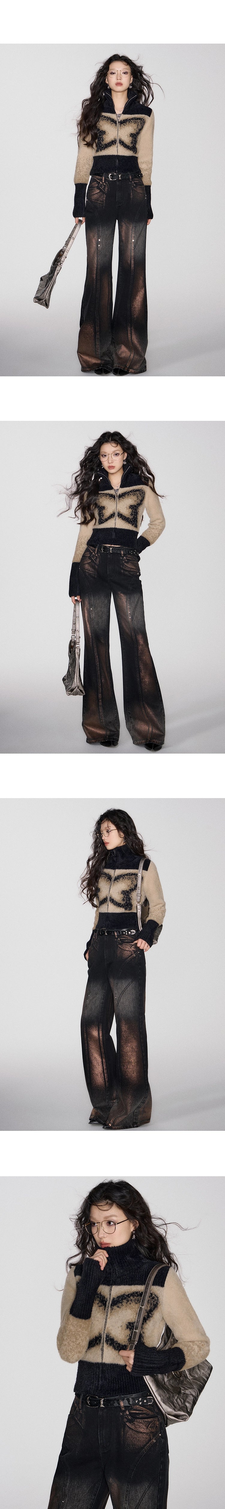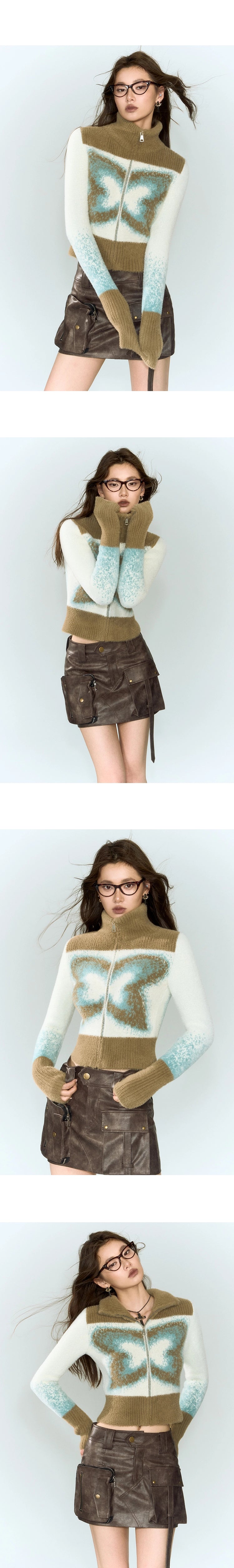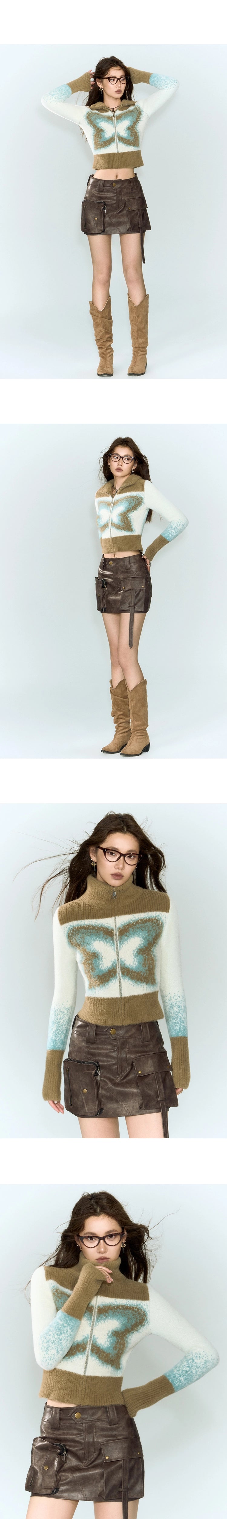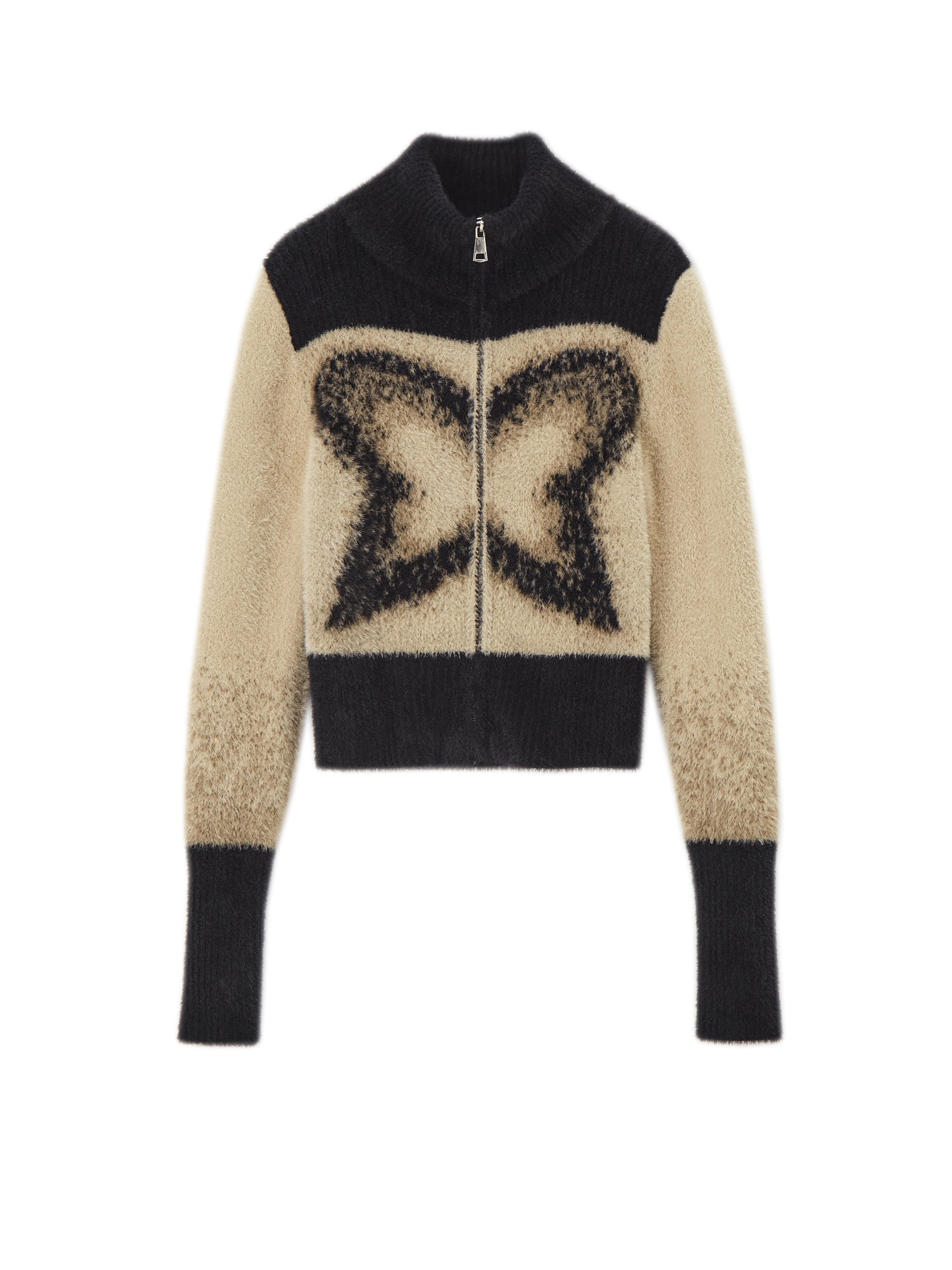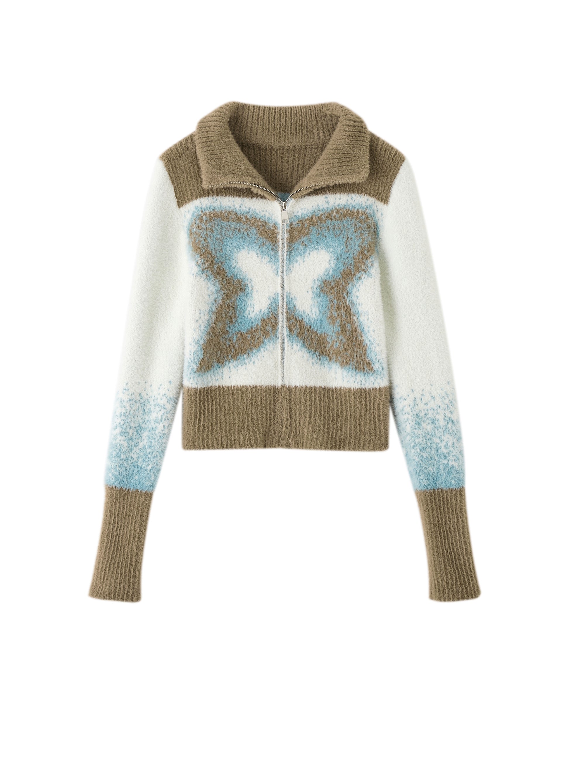 [スポット] OfAkiva「待たない錯覚」模倣ミンク蝶影ニットショートコートレディース冬の暖かいジャケット
