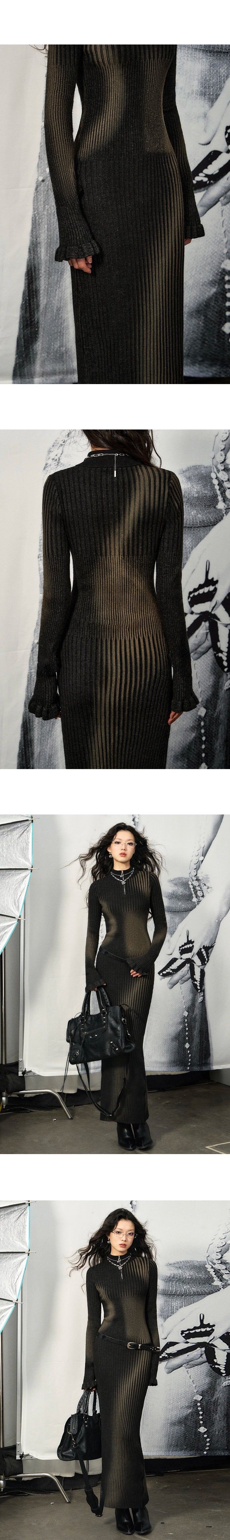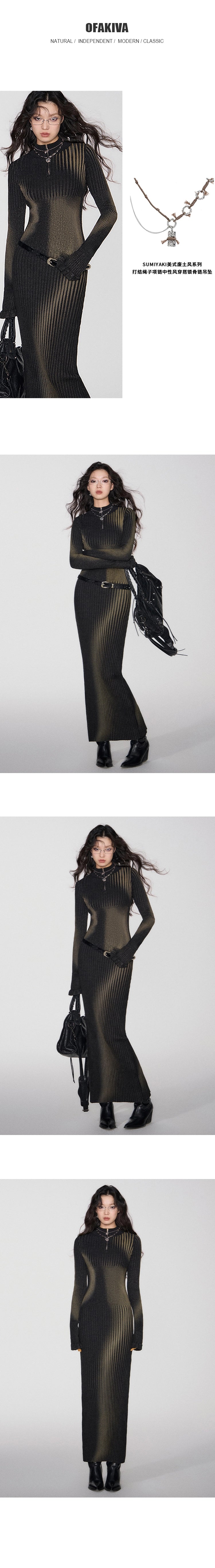 [スポット] OfAkiva「独立した境界線」抽象的なダイレクトプリントドレスレディースピットストリップニットマキシスカート