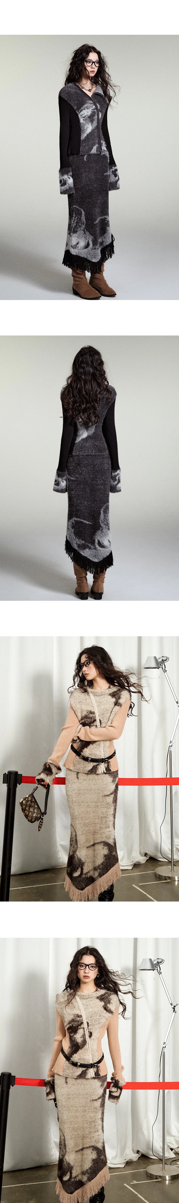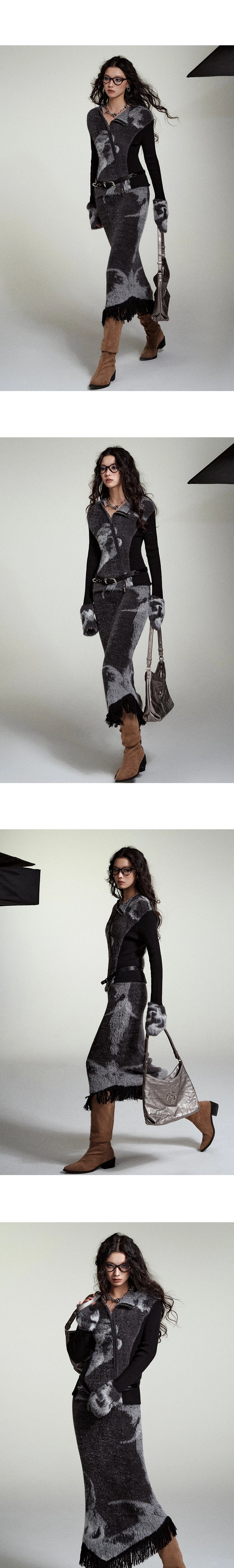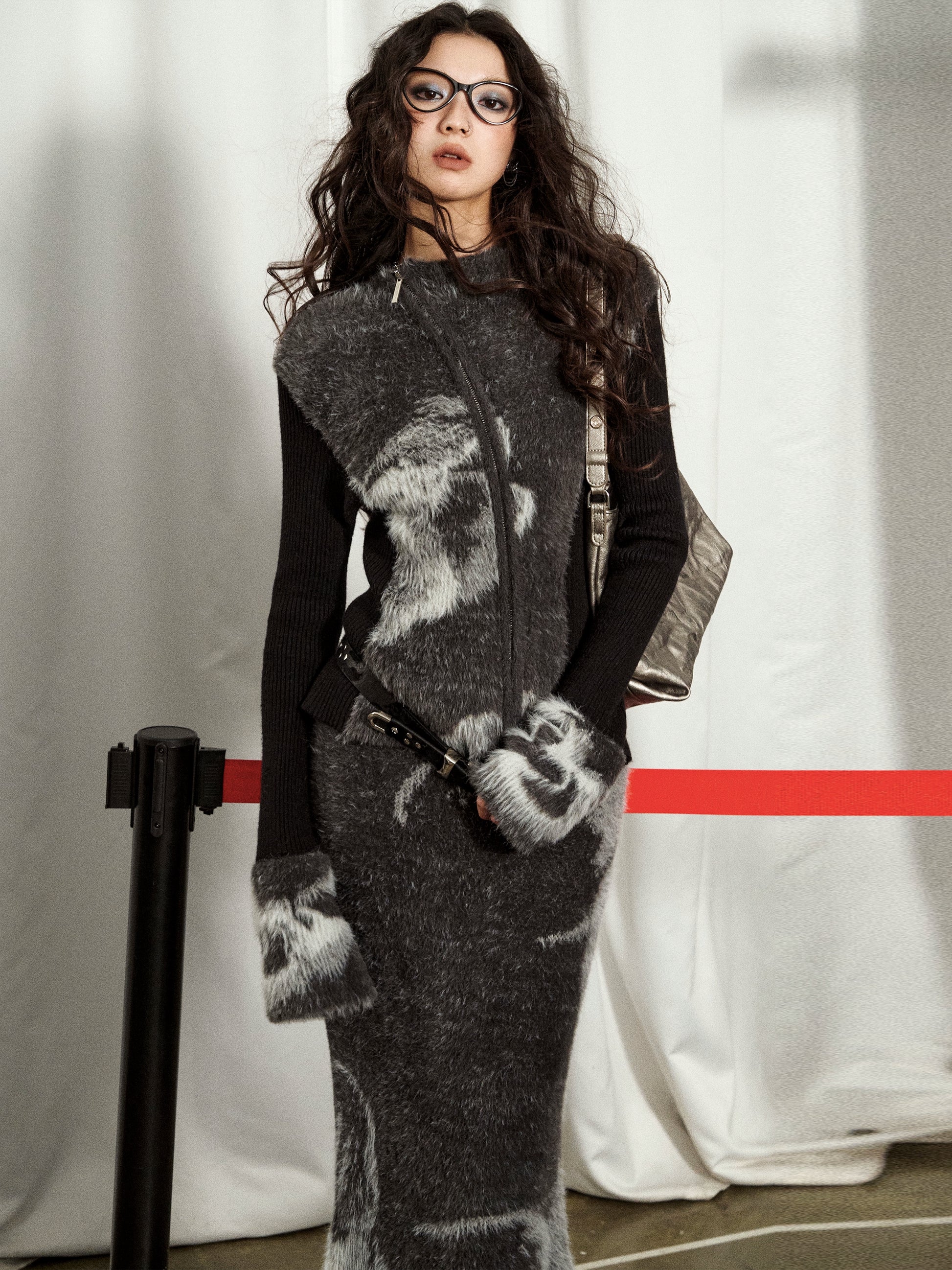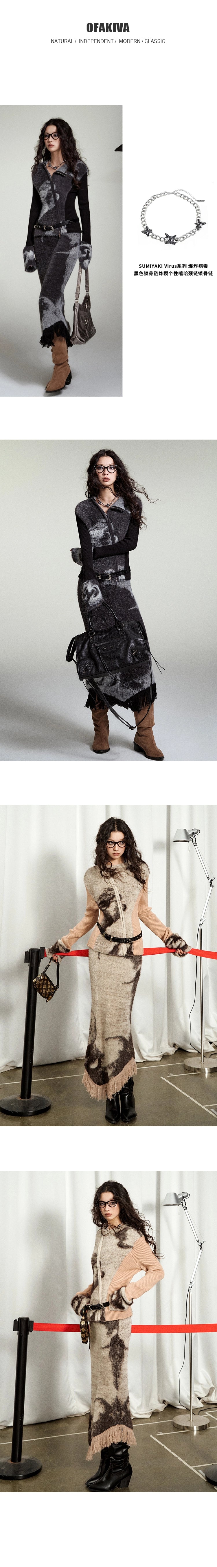 [スポット] OfAkiva「織りジャンル」フェイクミンクジャカードニットスーツレディースカーディガンスカート