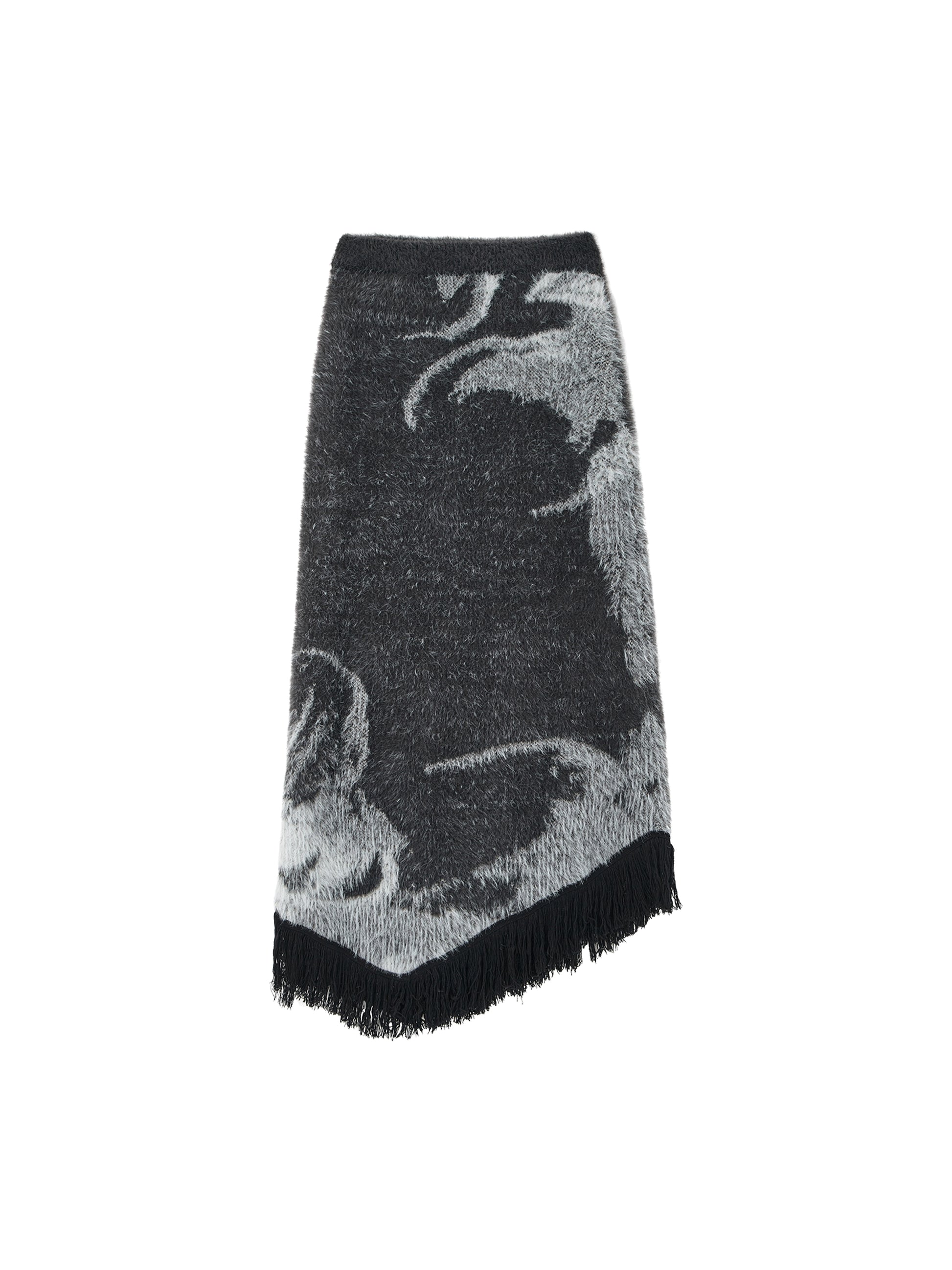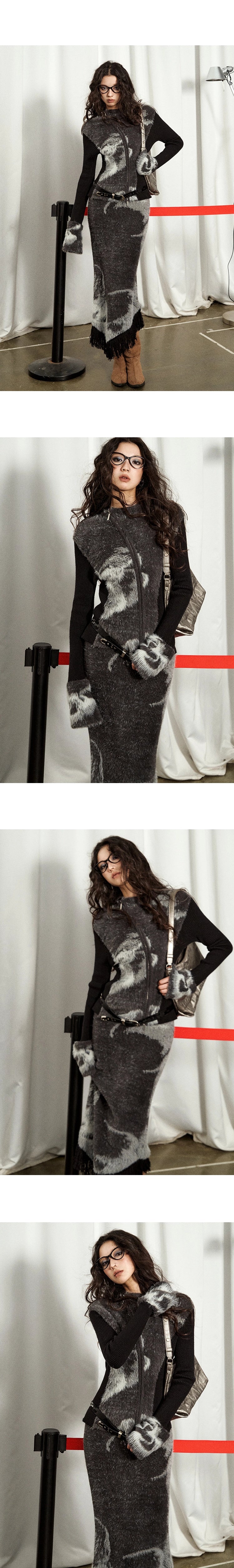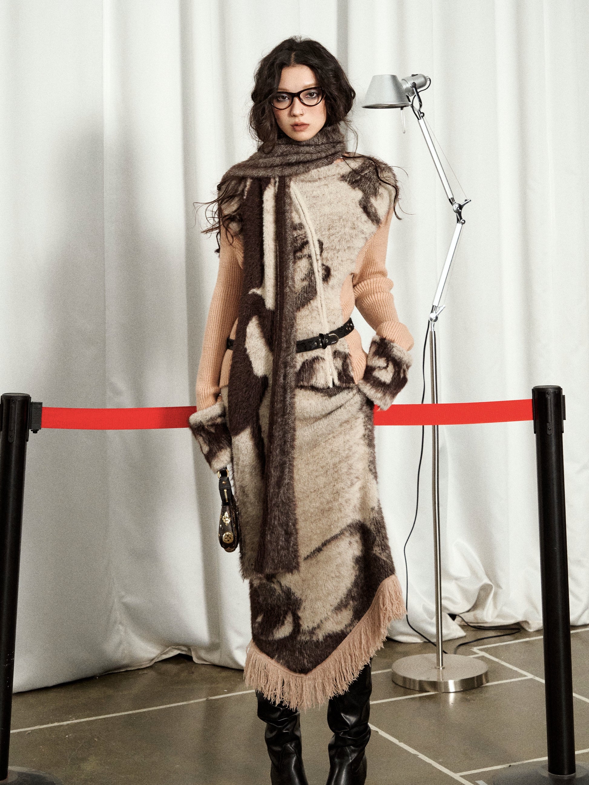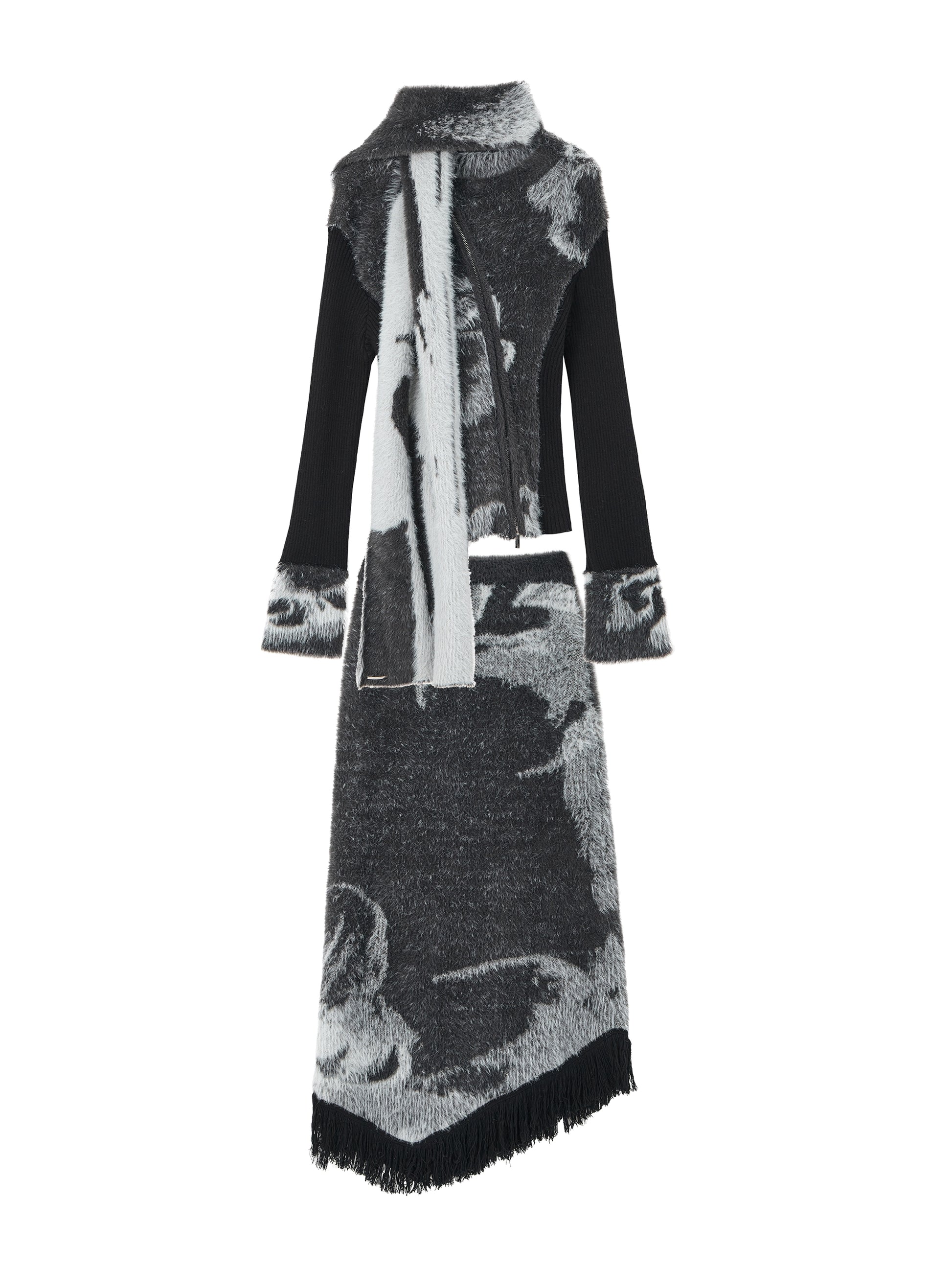 [スポット] OfAkiva「織りジャンル」フェイクミンクジャカードニットスーツレディースカーディガンスカート
