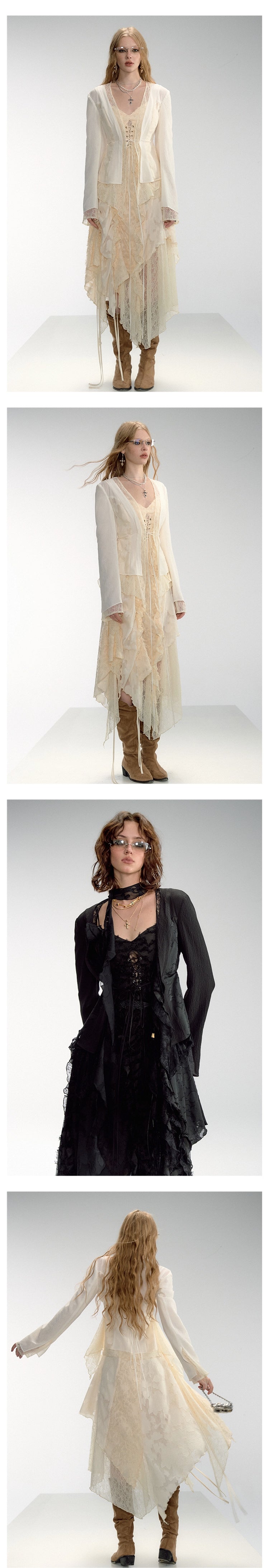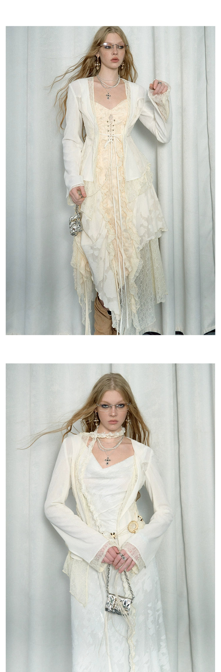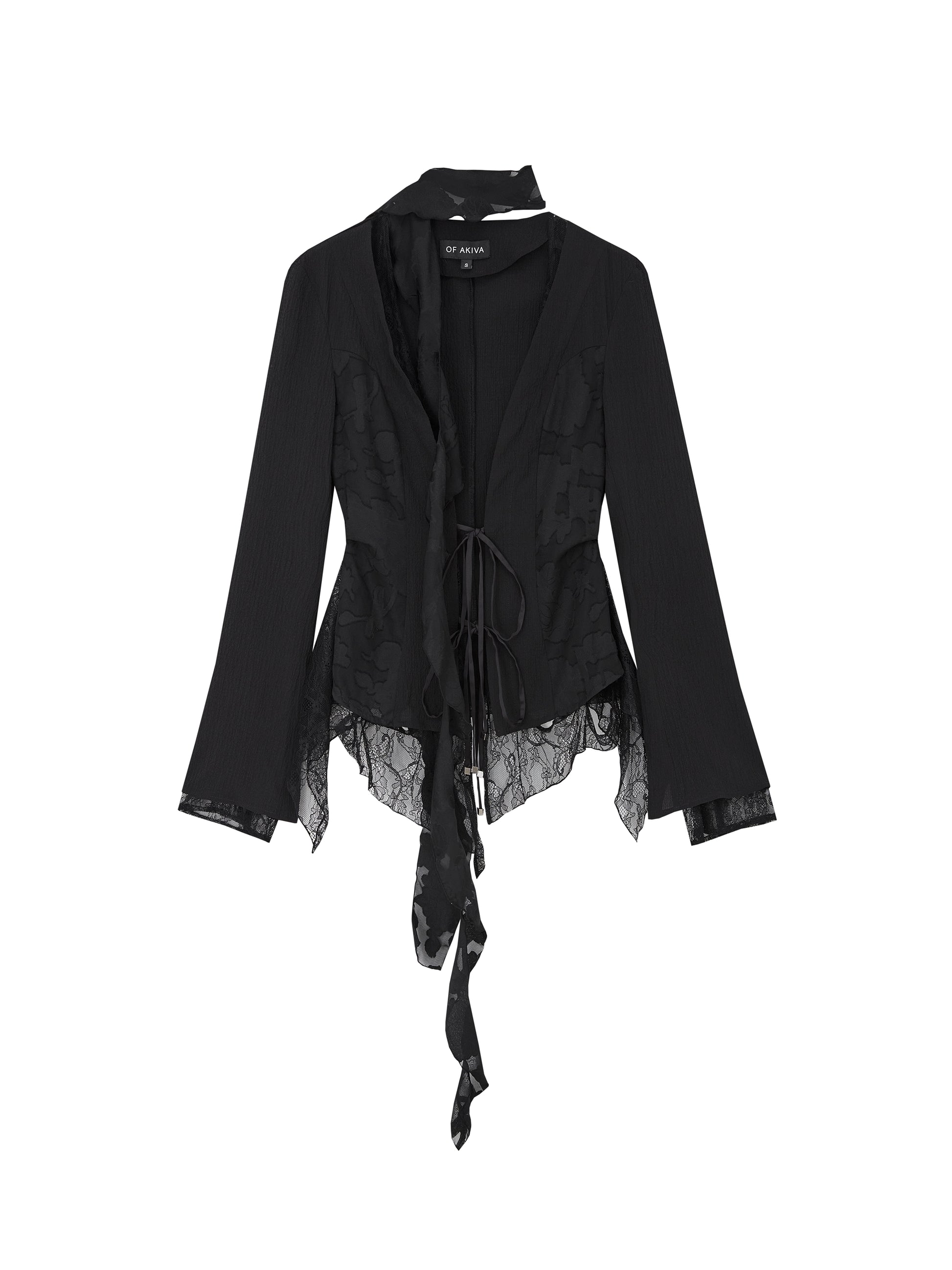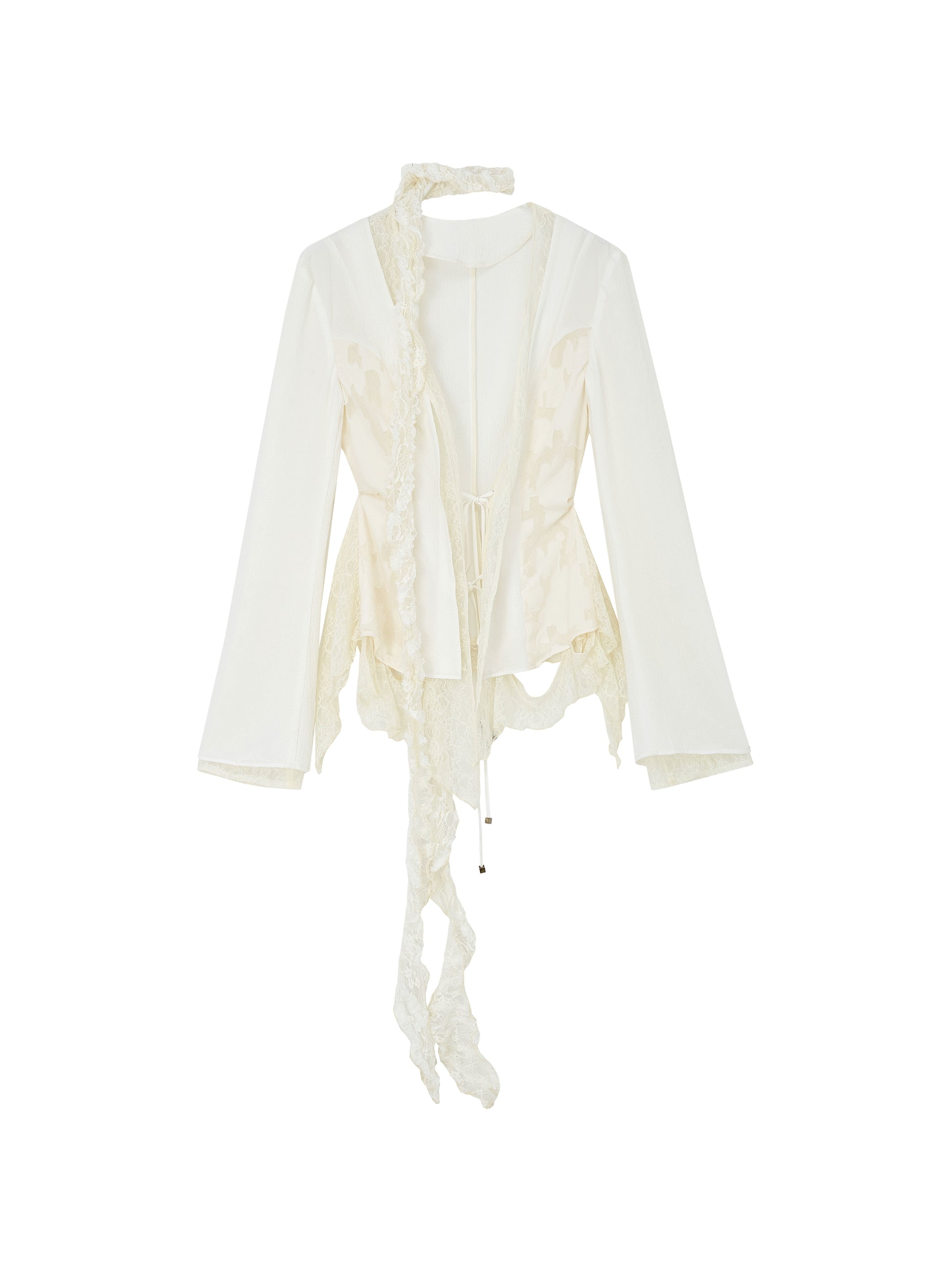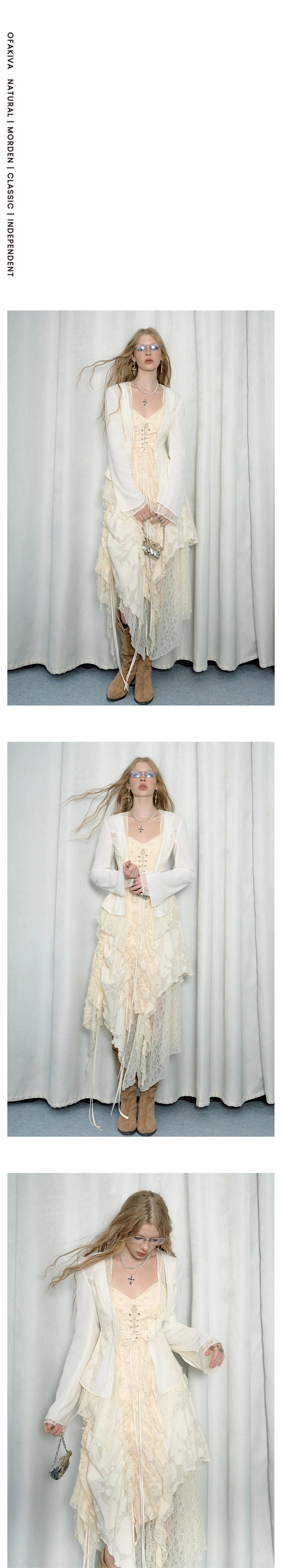 [スポット] OfAkiva「Daylight」わびさびレースパッチワークフェイクツーピースブレザー