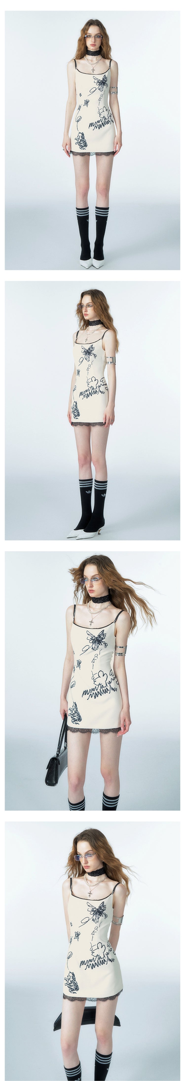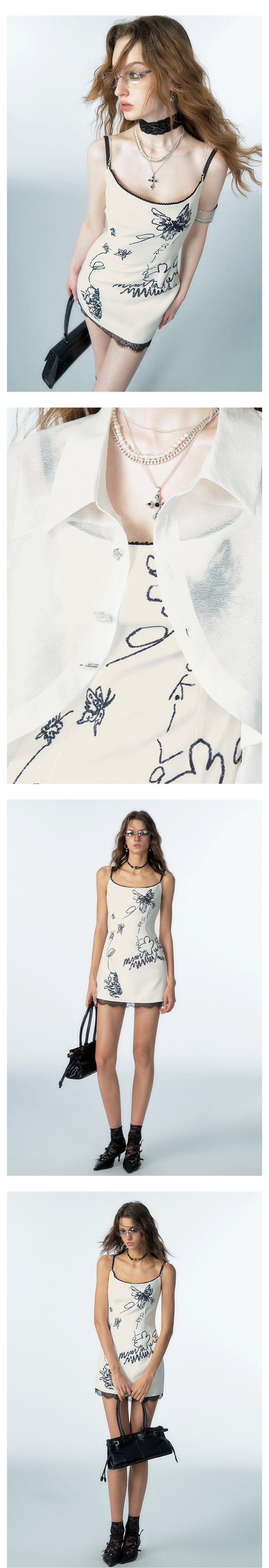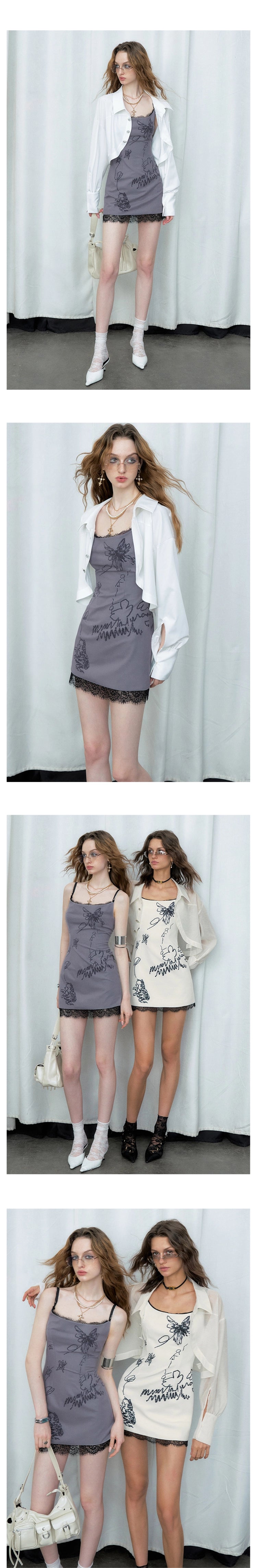 [スポット] OfAkiva 「No Man's Land Poetry」フェイクツーピースデザインバタフライキャットキャットプリントドレス