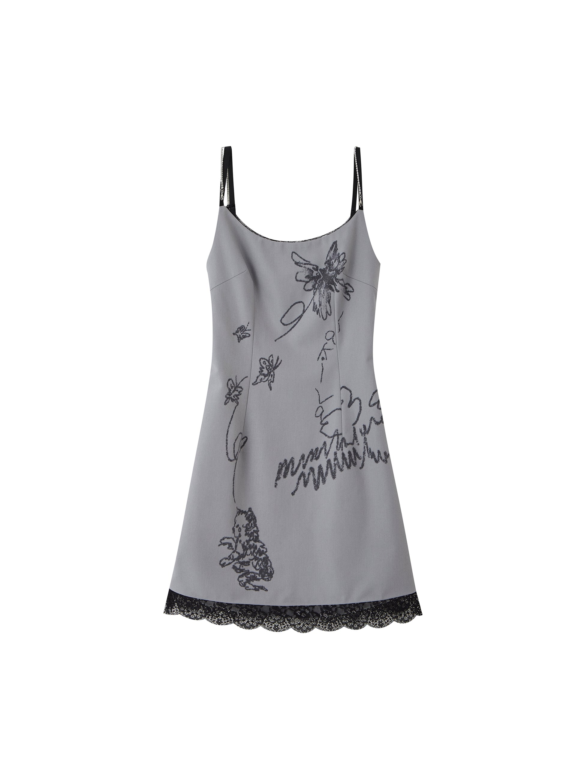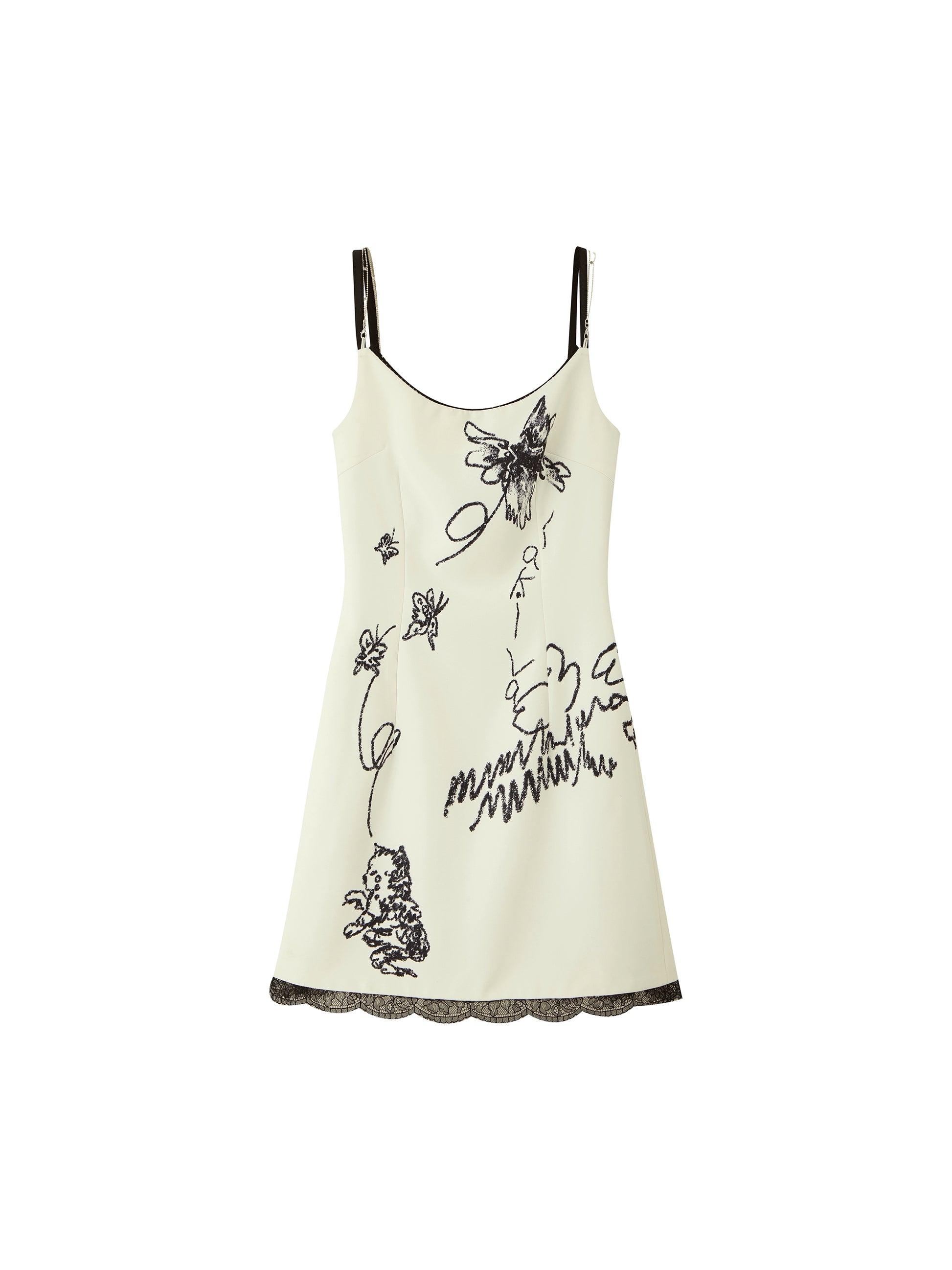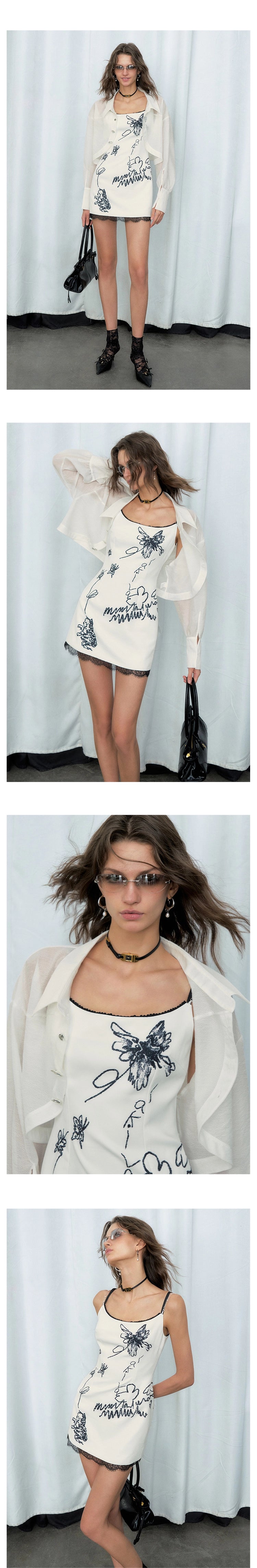 [スポット] OfAkiva 「No Man's Land Poetry」フェイクツーピースデザインバタフライキャットキャットプリントドレス