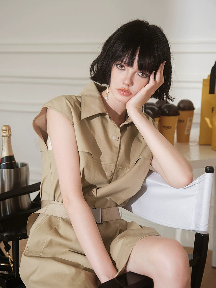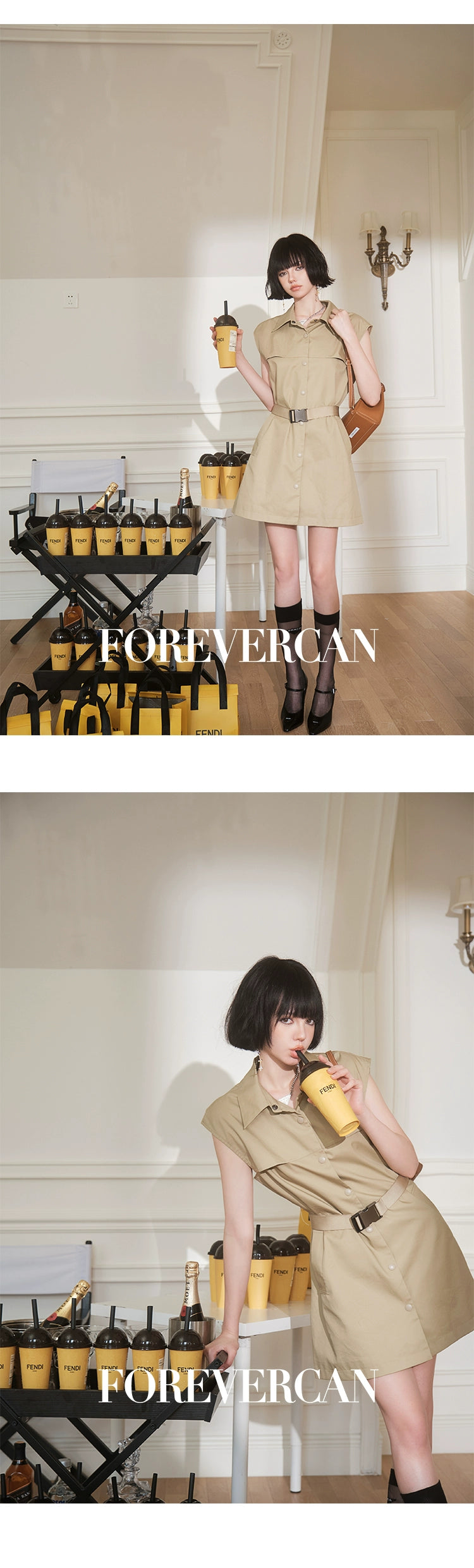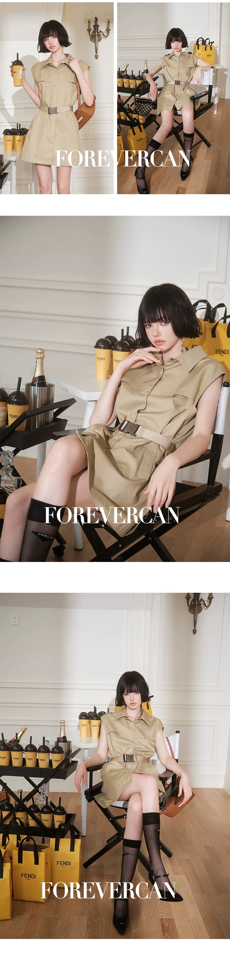 フォーエバーカンレディース2024年夏新しいカーゴジャケットドレスレトロな気質セレブリティスタイルのショートスカート