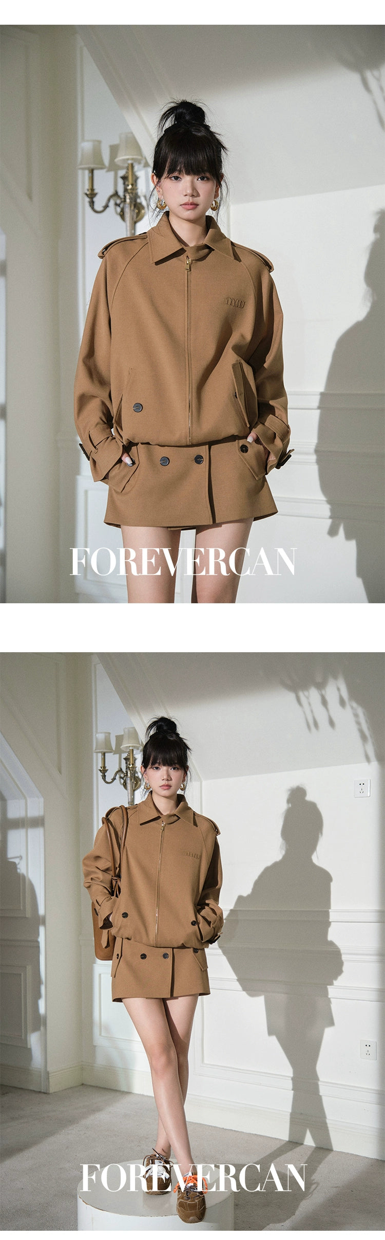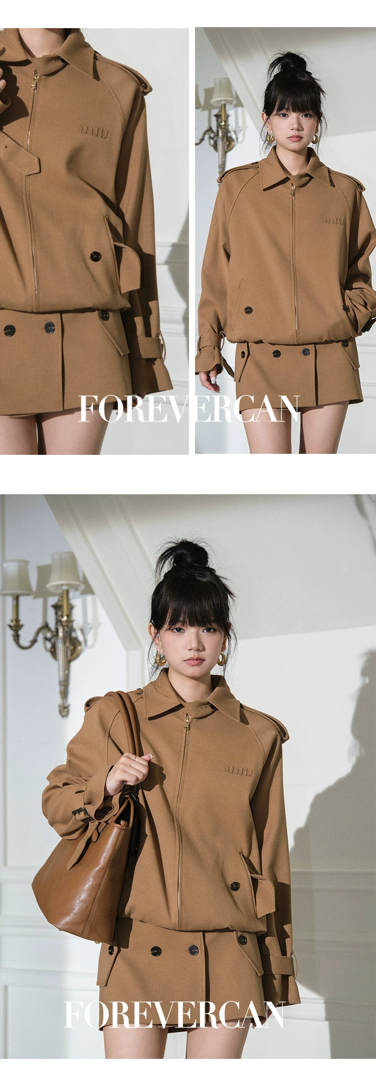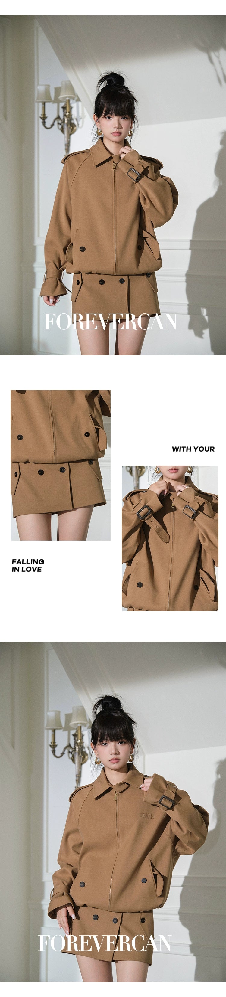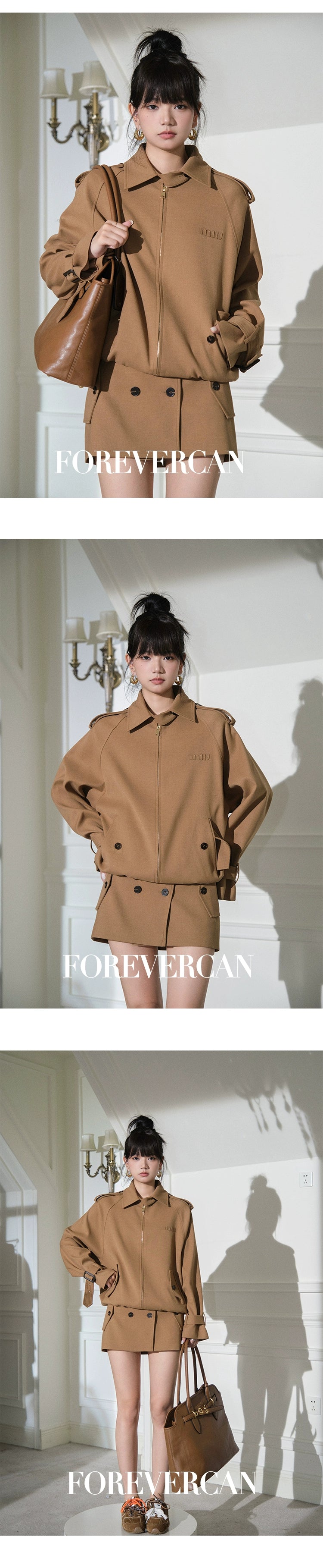 フォーエバーカン レディース 2024 ニューベルリン ウィークエンド m!u24S レトロ ラペル ジャケット ジャケット + スカート