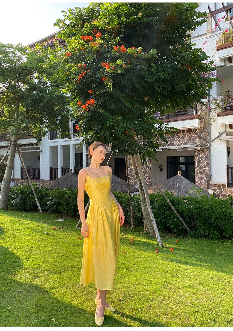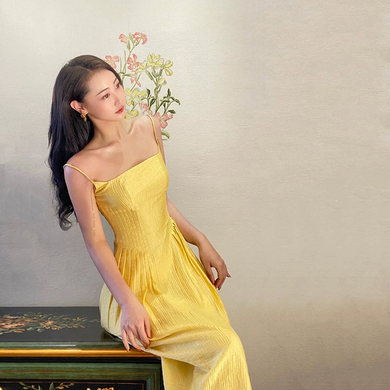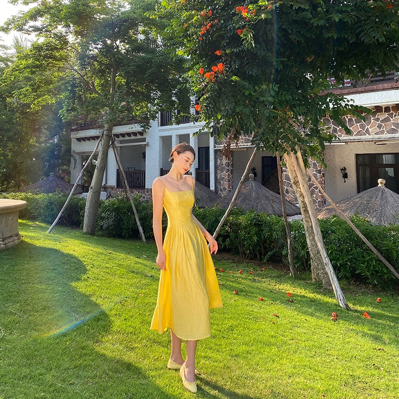 プリンセスリベル少し背中の開いたAラインのスリップドレス夏のドーパミンフランスのリゾートロングスカート