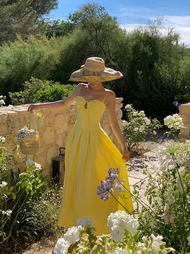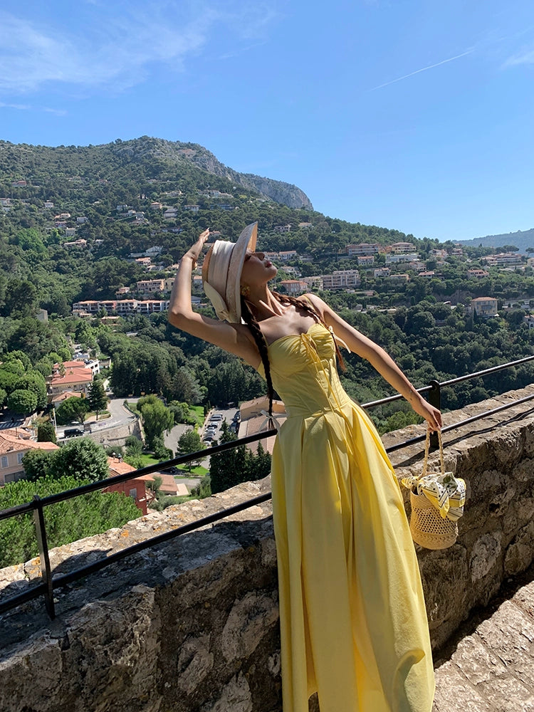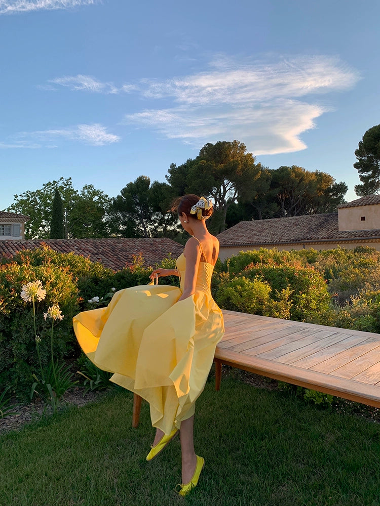 プリンセスリベル2.0サスペンダードレス女性の夏のお茶の休憩フランスの気質ウエスト締め細いAラインスカート