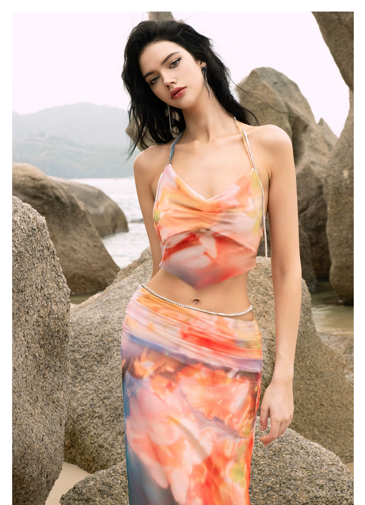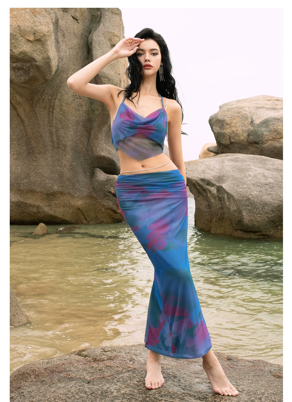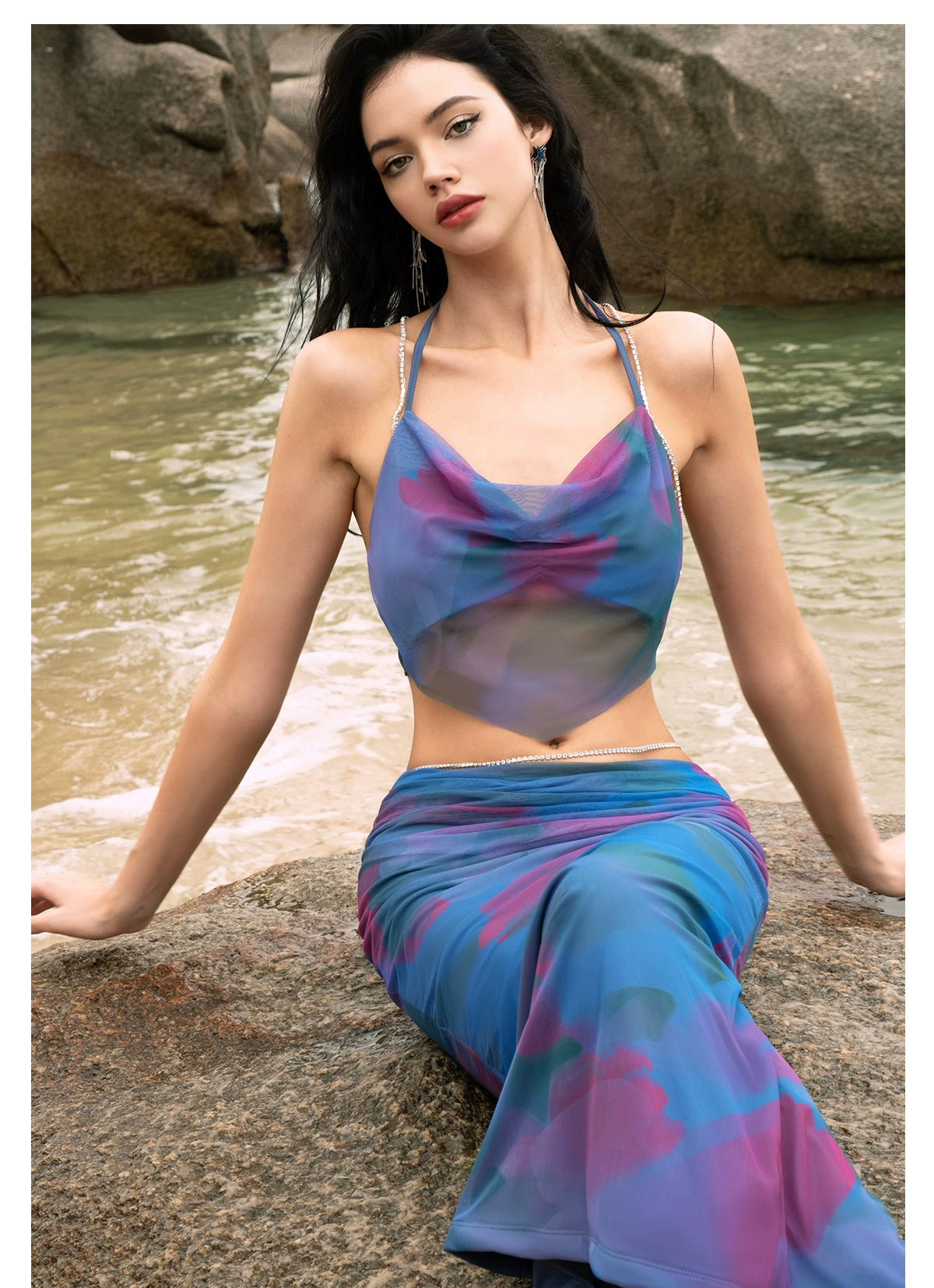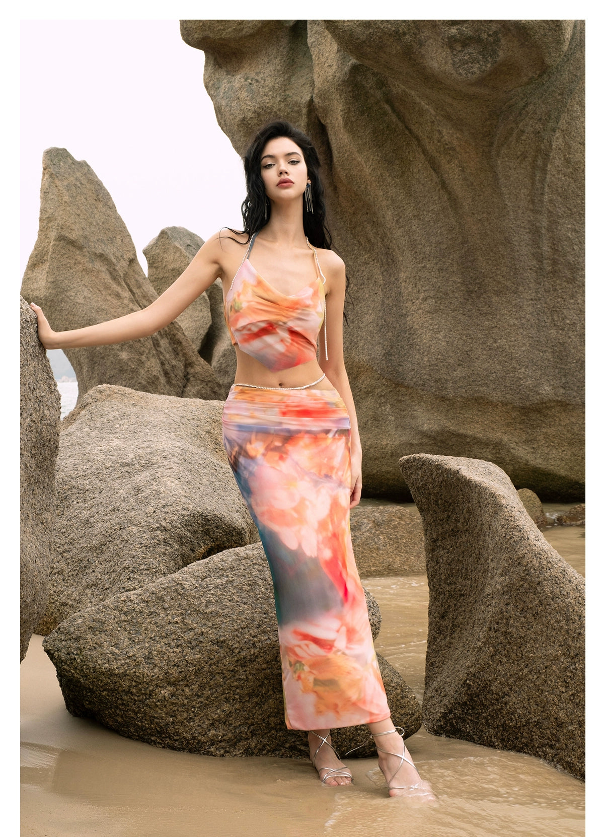 [同じ段落の江英栄] シアーラックPBザクロフラワーレースアップサマーキャミソールスカートセット