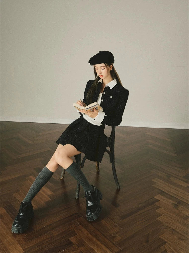 Tweed Small Fragrance Suit Pearl Buckle Short Skirt