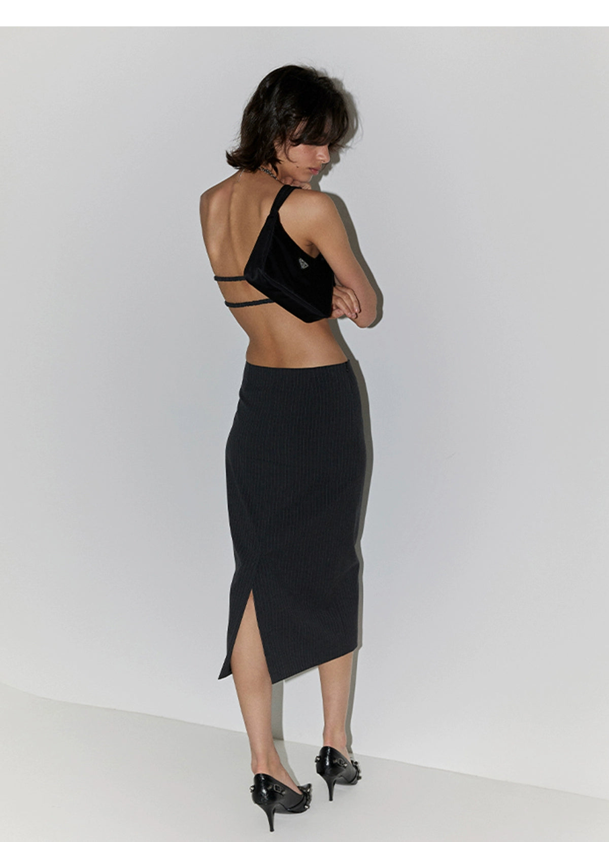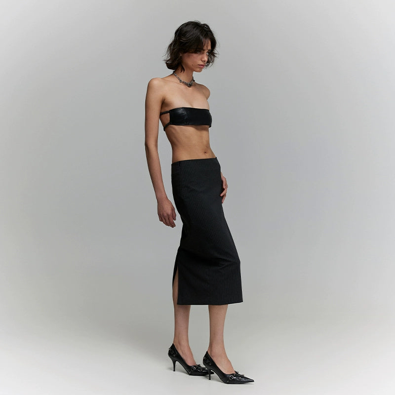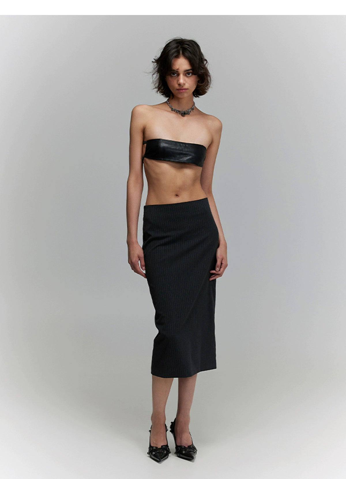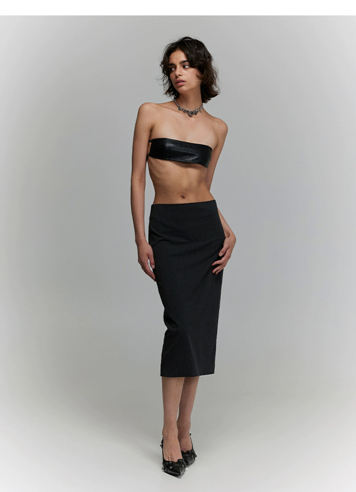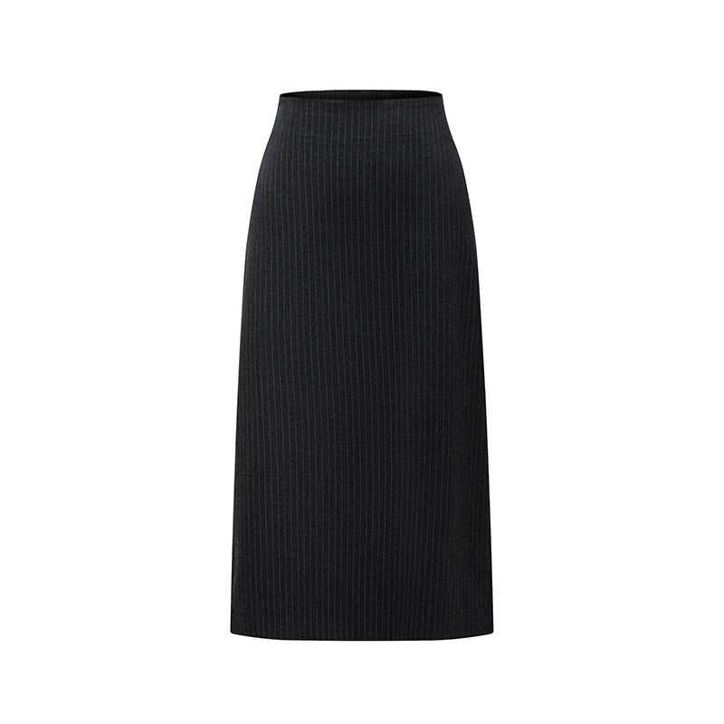 SansFrontieresグレーストライプスカートグレーファッショナブルなオーバーザニースーツスカート