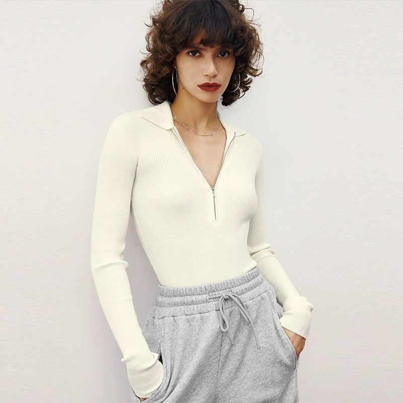 TR彼女のホットエンドルフィンオフホワイトウールポロネックジッパーVネックベーシックヨーロッパとアメリカの女の子の着ぐるみ