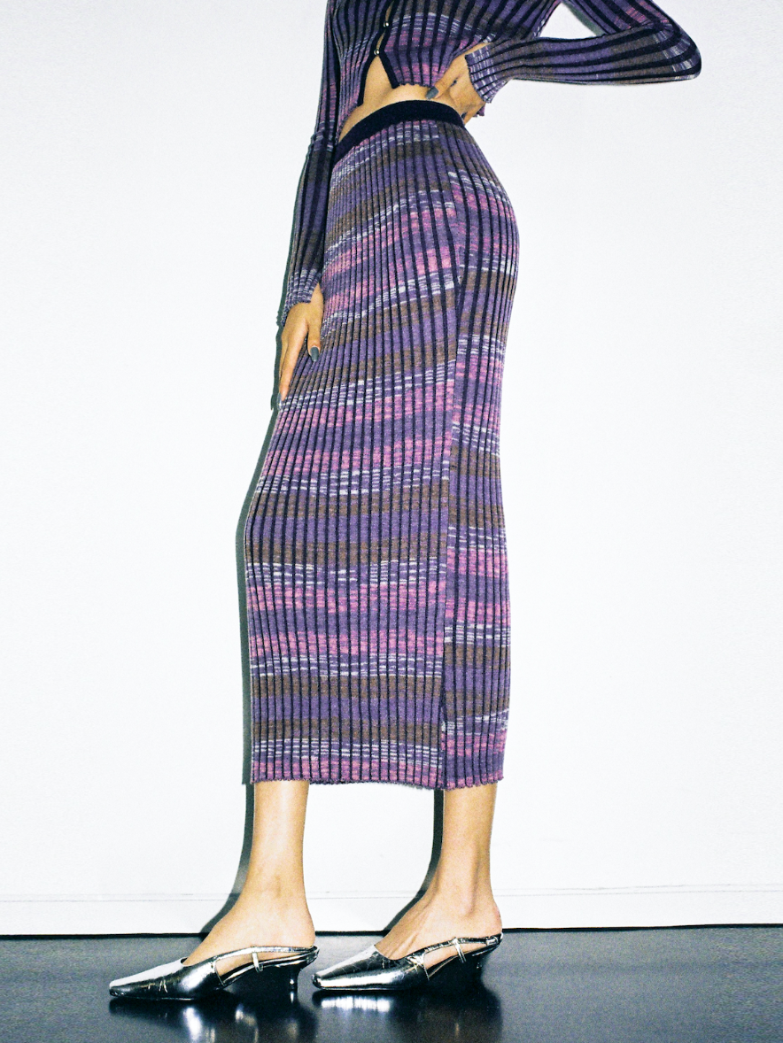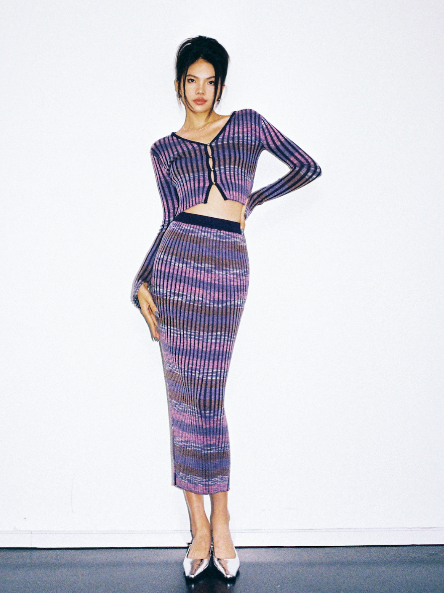 TR She ホットバイオレットパープルグラデーション糸優しくて怠惰なフレンチスリムスリムヒップスリットスカート