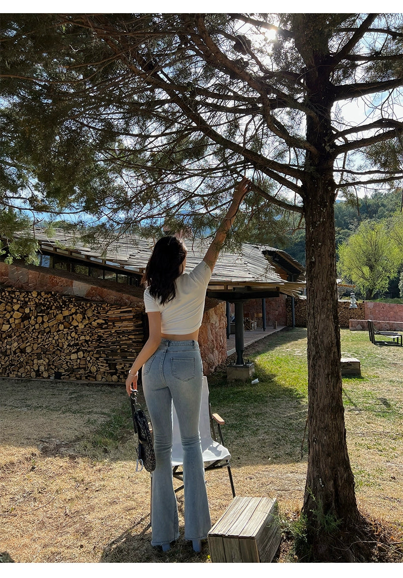 Xiaoli chopsticks essence 2.0 light color、ハイウエスト、ストレート、slightly フレアジーンズ、スプリングドレス、スリム、スキニーパンツ