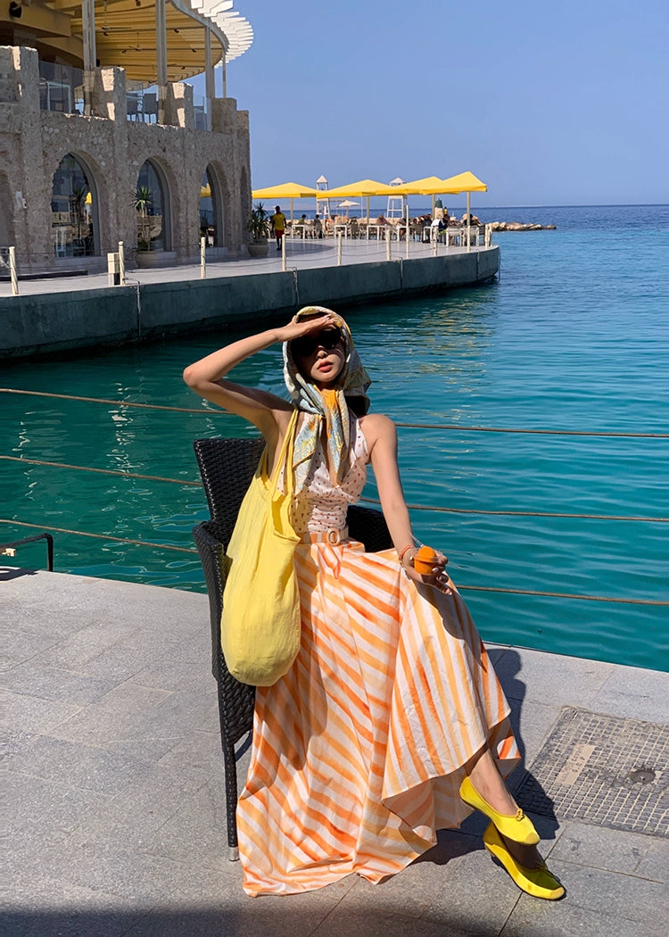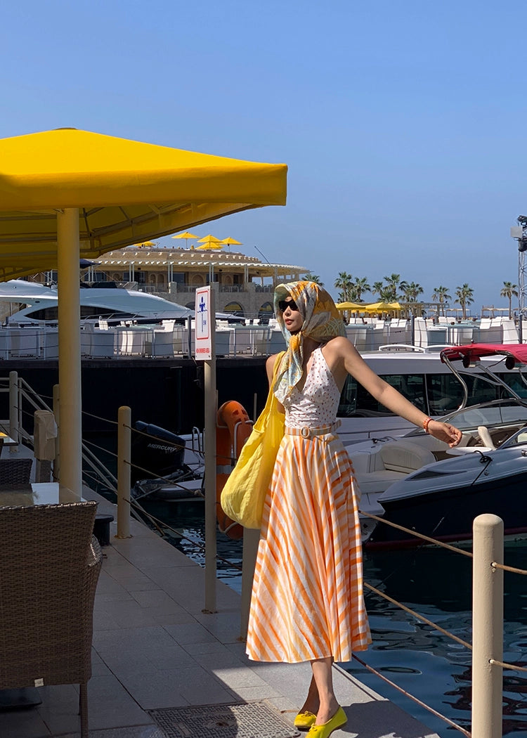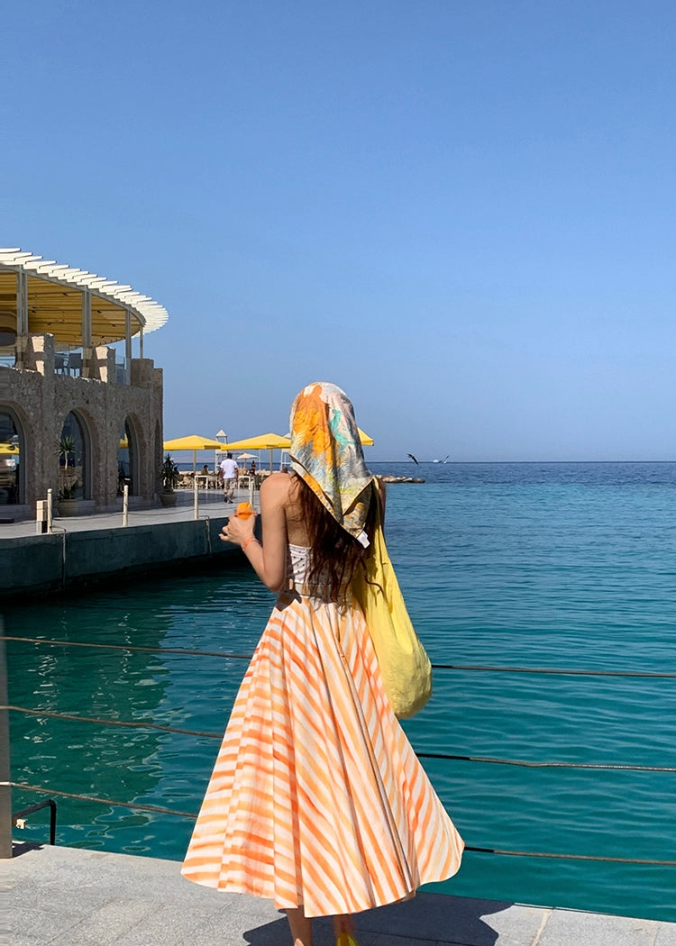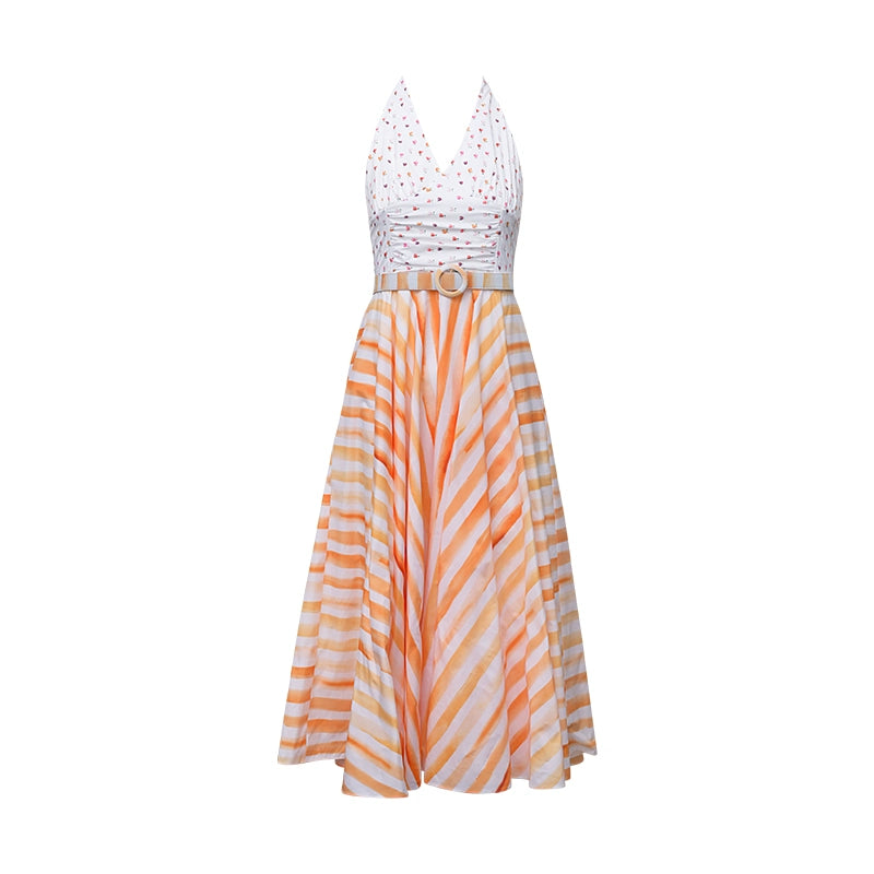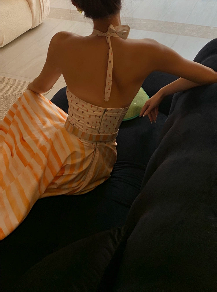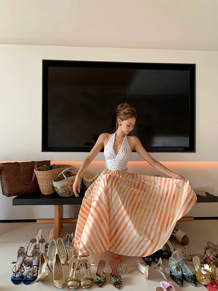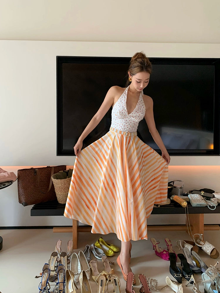 Xiaoli Yuxia ChengqiホルターネックサスペンダーVネックドレス春と夏のドーパミンティーブレイクフランスのAラインロングスカート