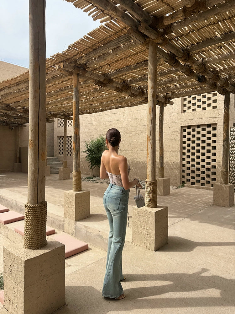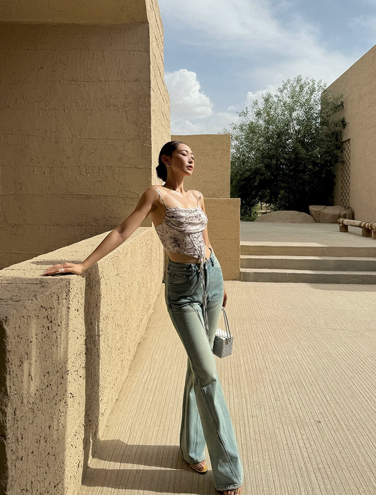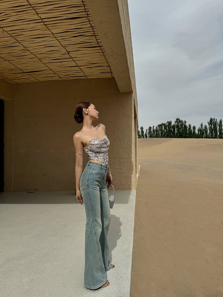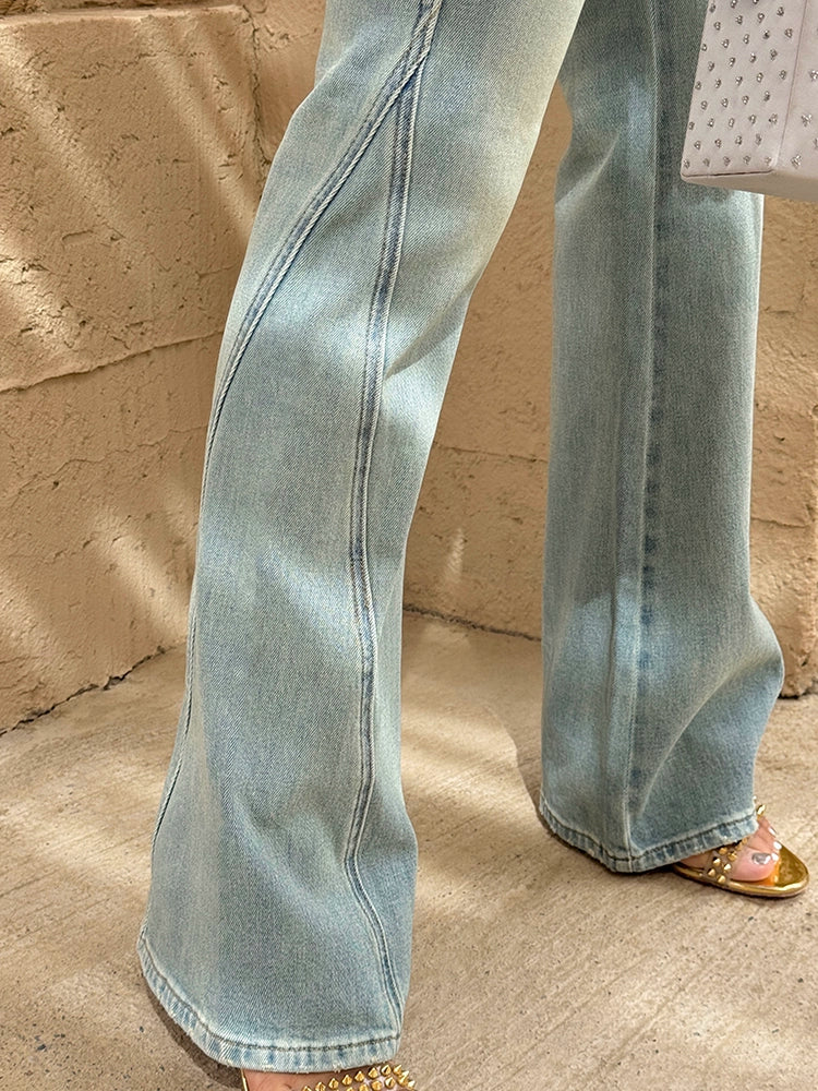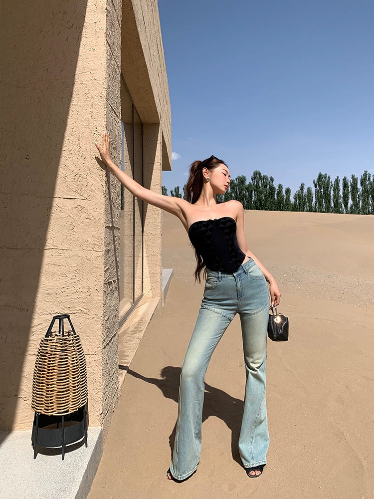 Xiaoliweiフレアストレートレッグワイドレッグジーンズ、夏の細いデザイン、レトロなスリムパンツ