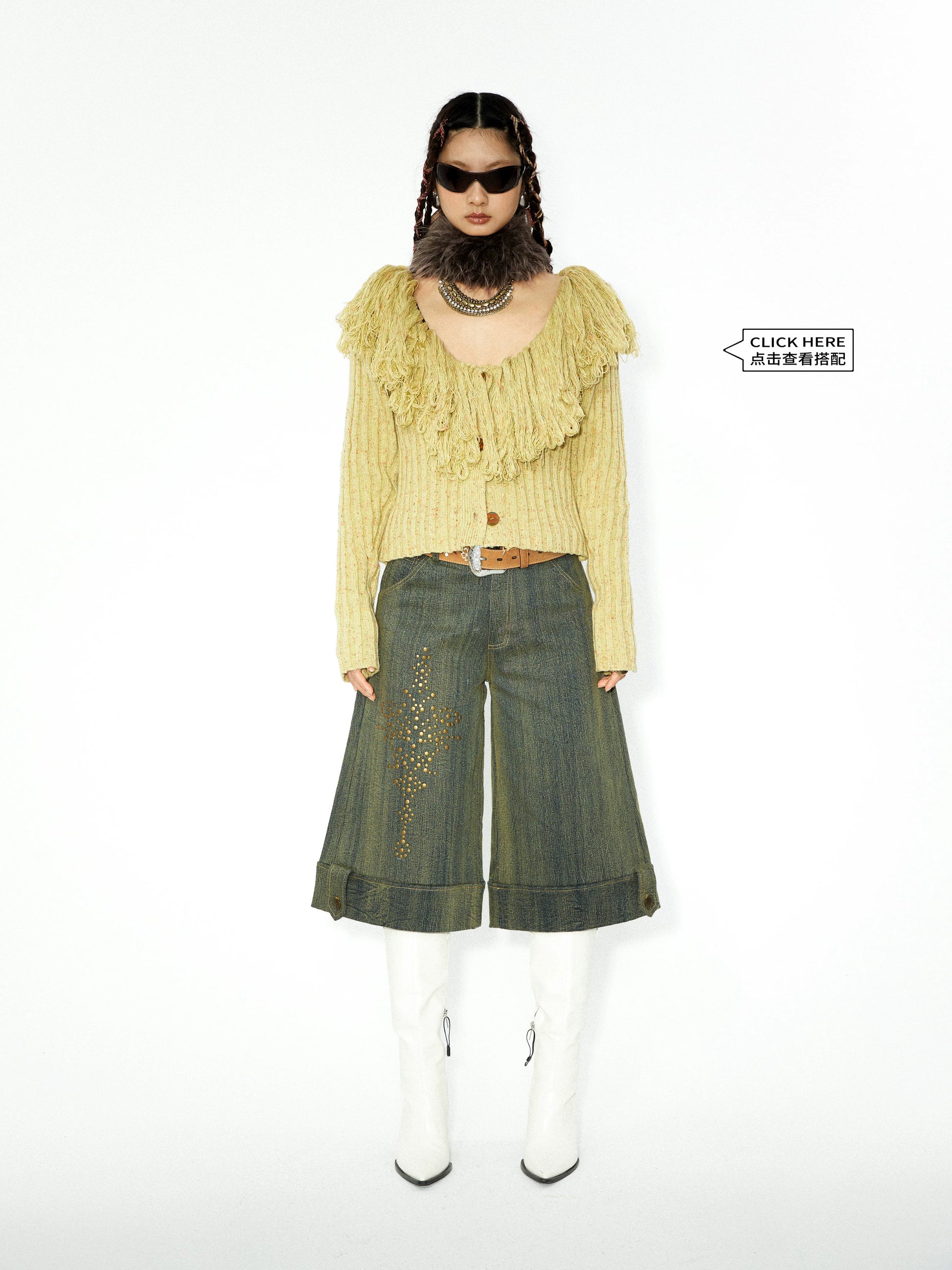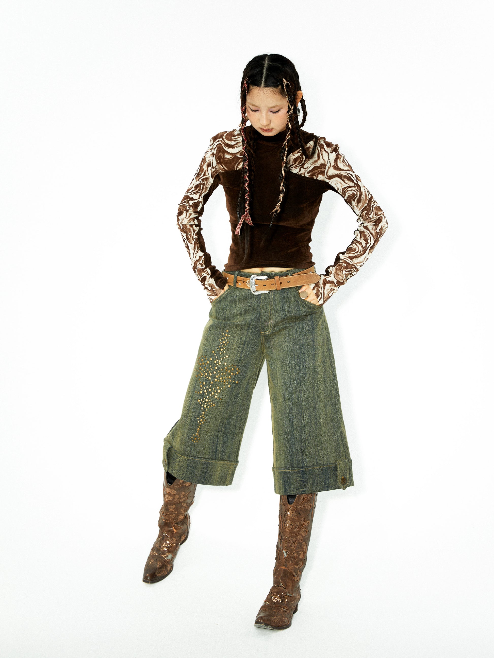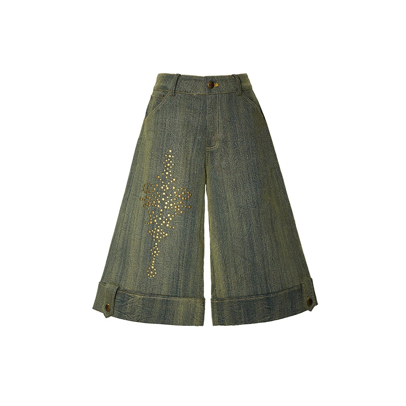 YOSHUYUKIオリジナルの秋冬スタッズ柄デザインに、ウォッシュ加工のデニムミッドパンツをあしらいました