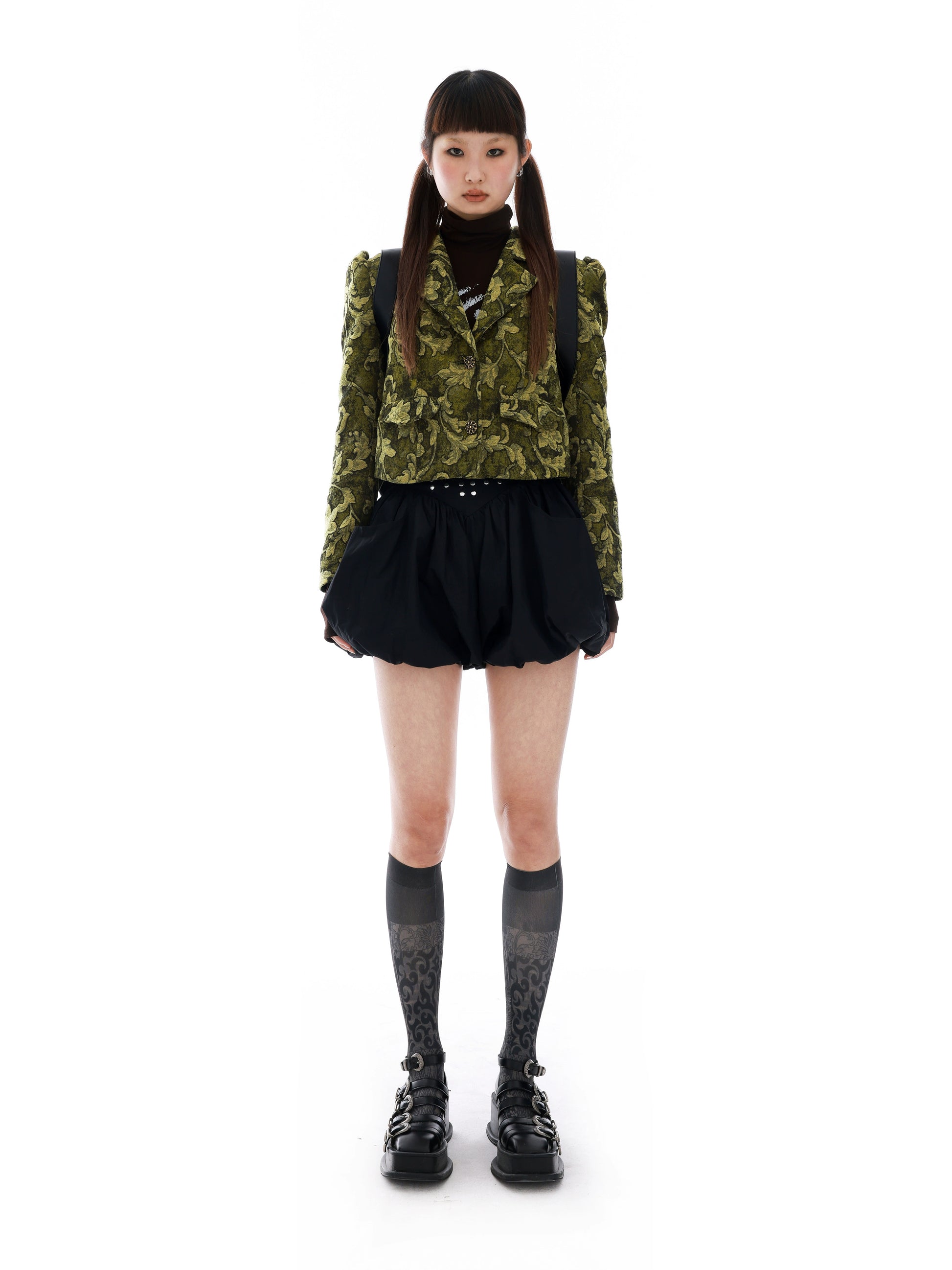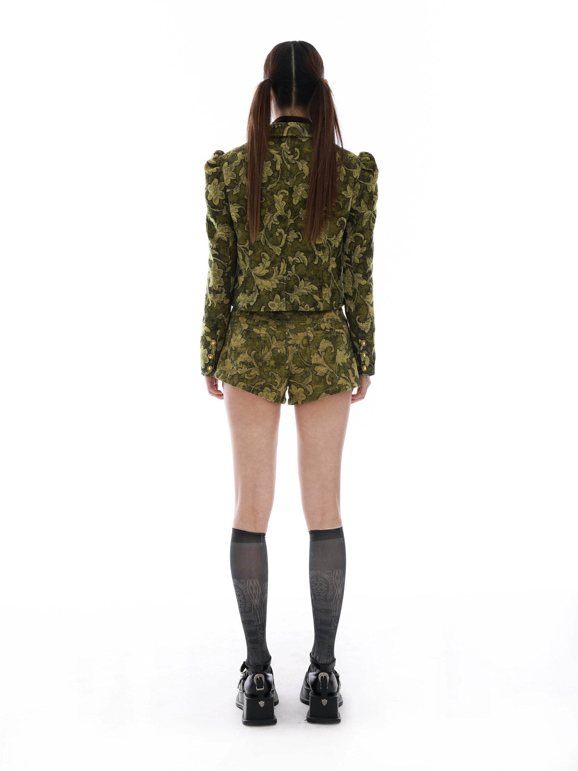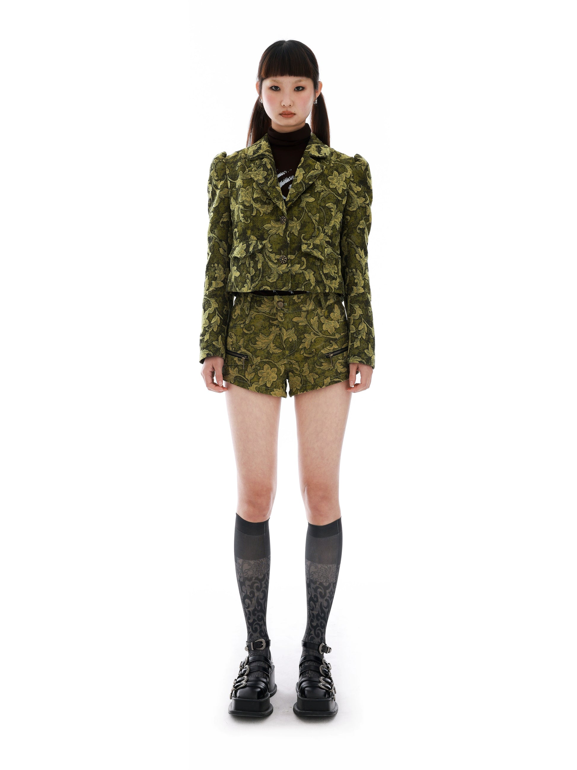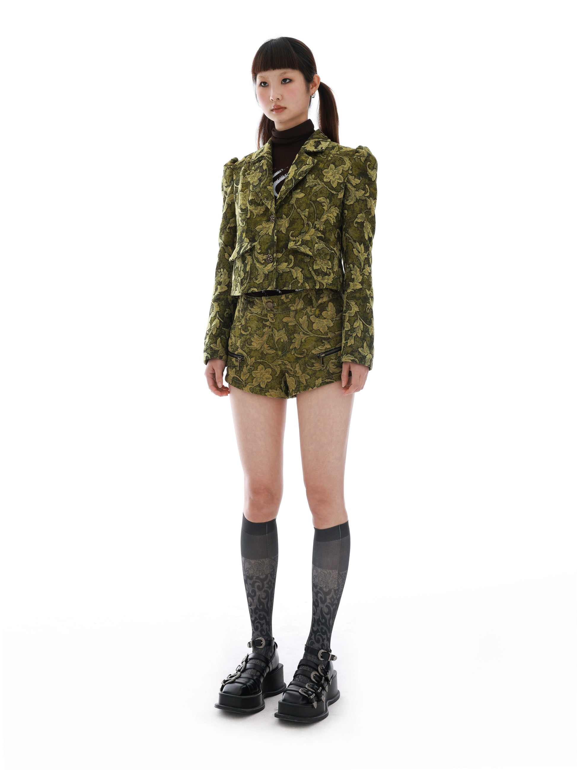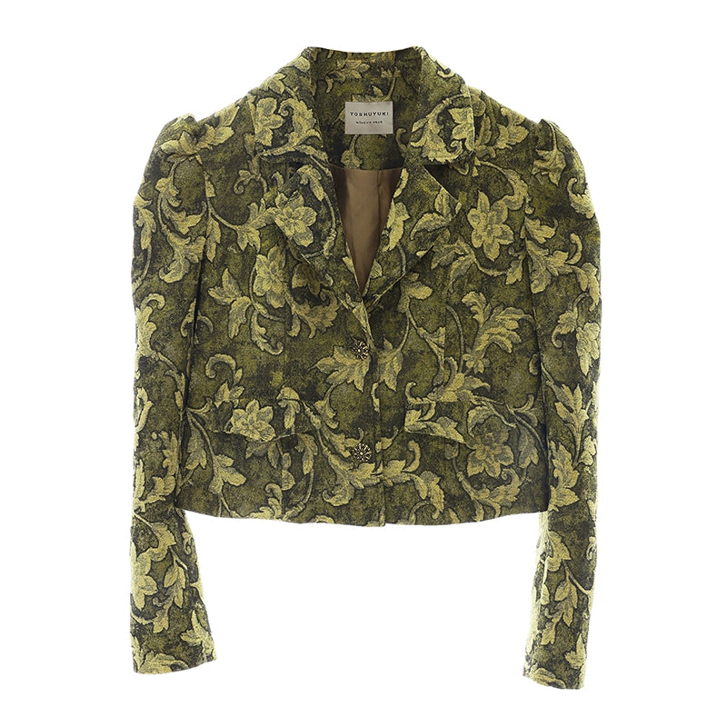 YOSHUYUKIオリジナルデザイン杉グリーンシェニールジャカード生地レトロな新しい中国のスーツ