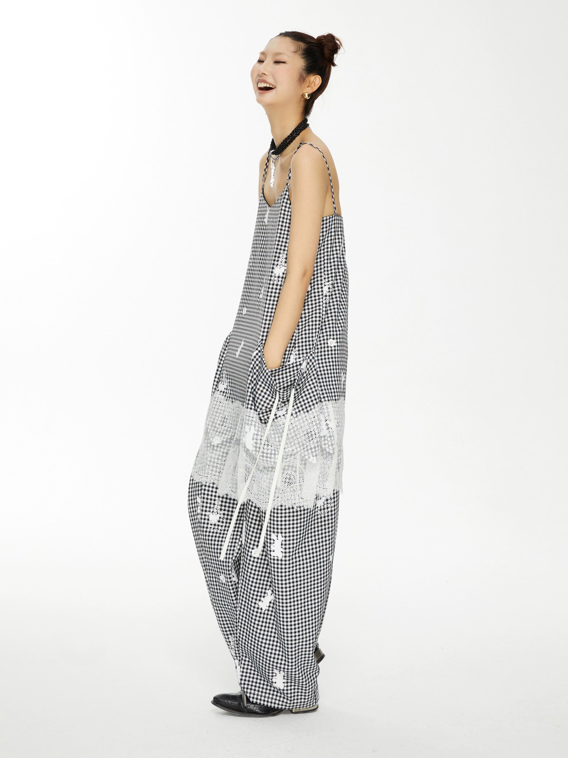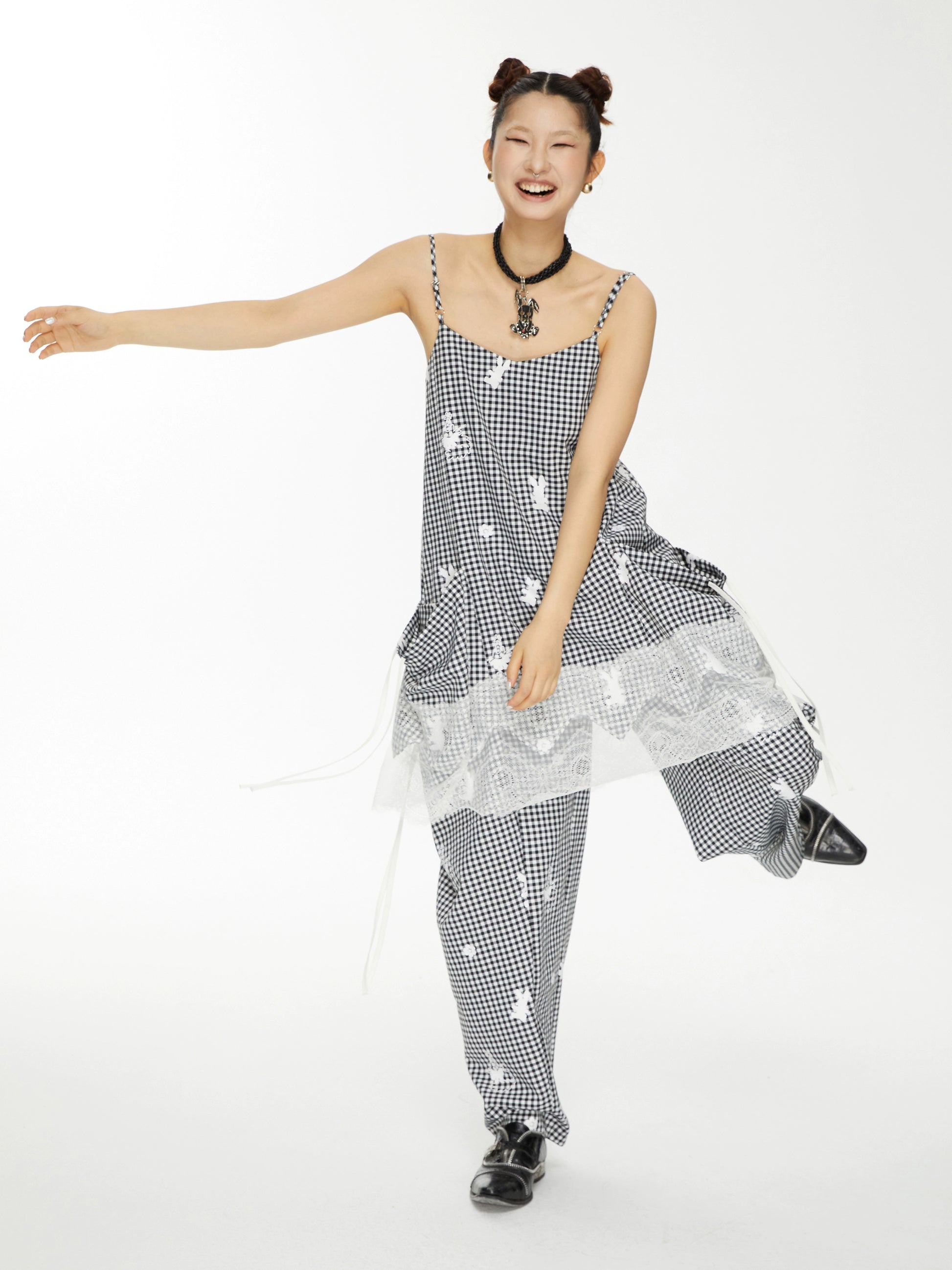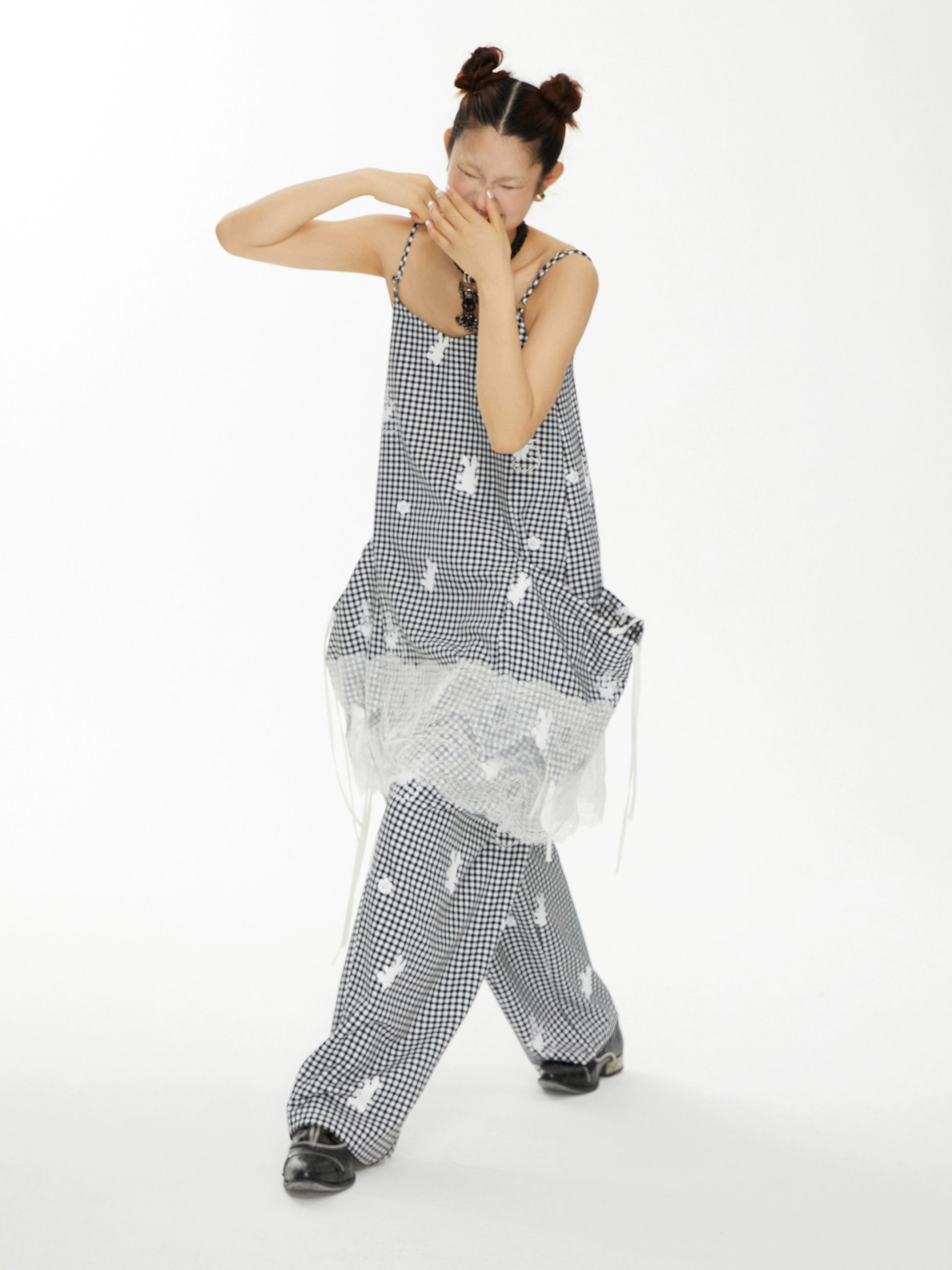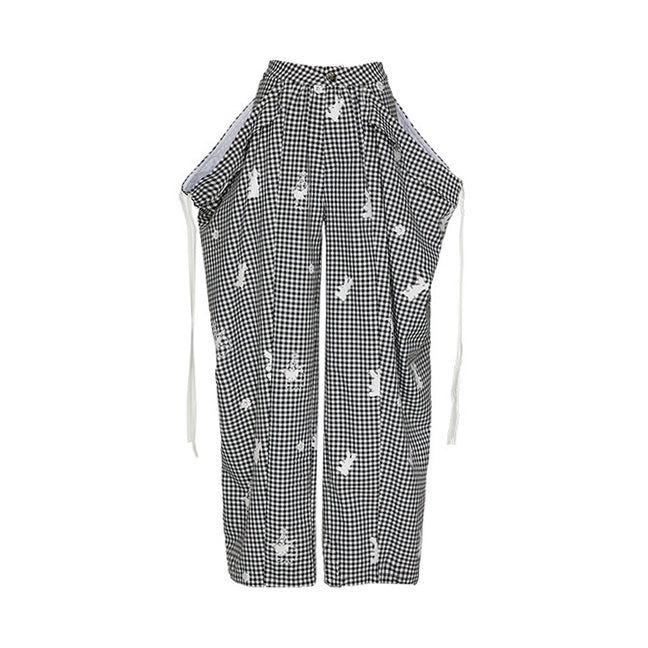 YOSHUYUKI「Punk Bunny」プリントチェックパンツ ルーズカジュアルパンツを解体